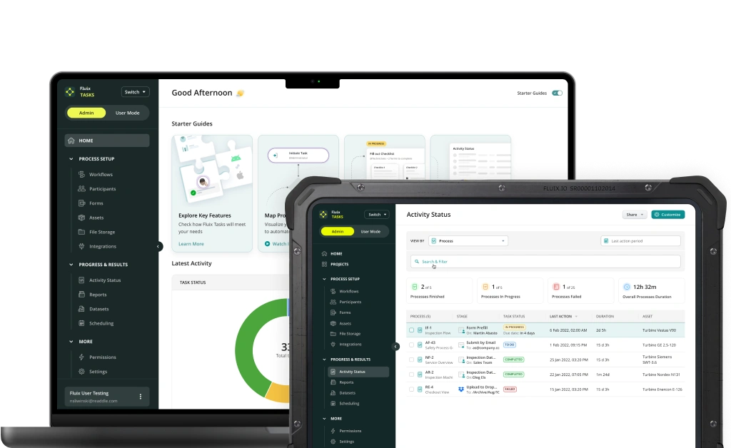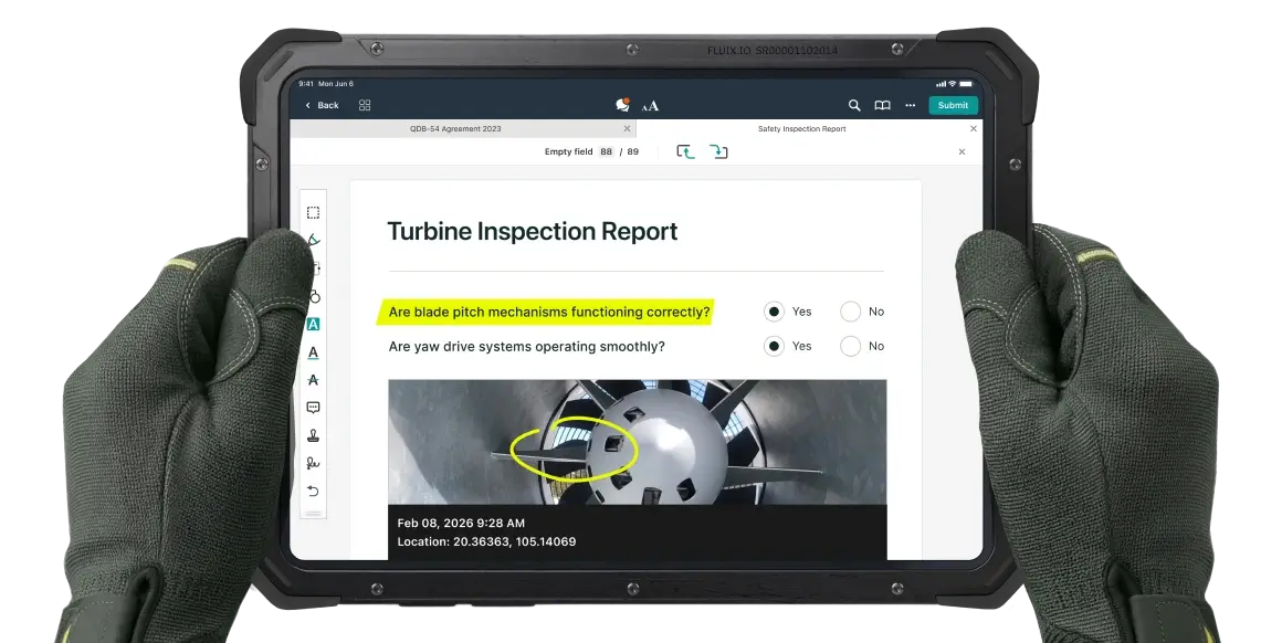 Fluix facilitates inspections in all kinds of fields – construction sites, wind farms, aviation hubs and more. Flexibility from the turbine to the tarmac.