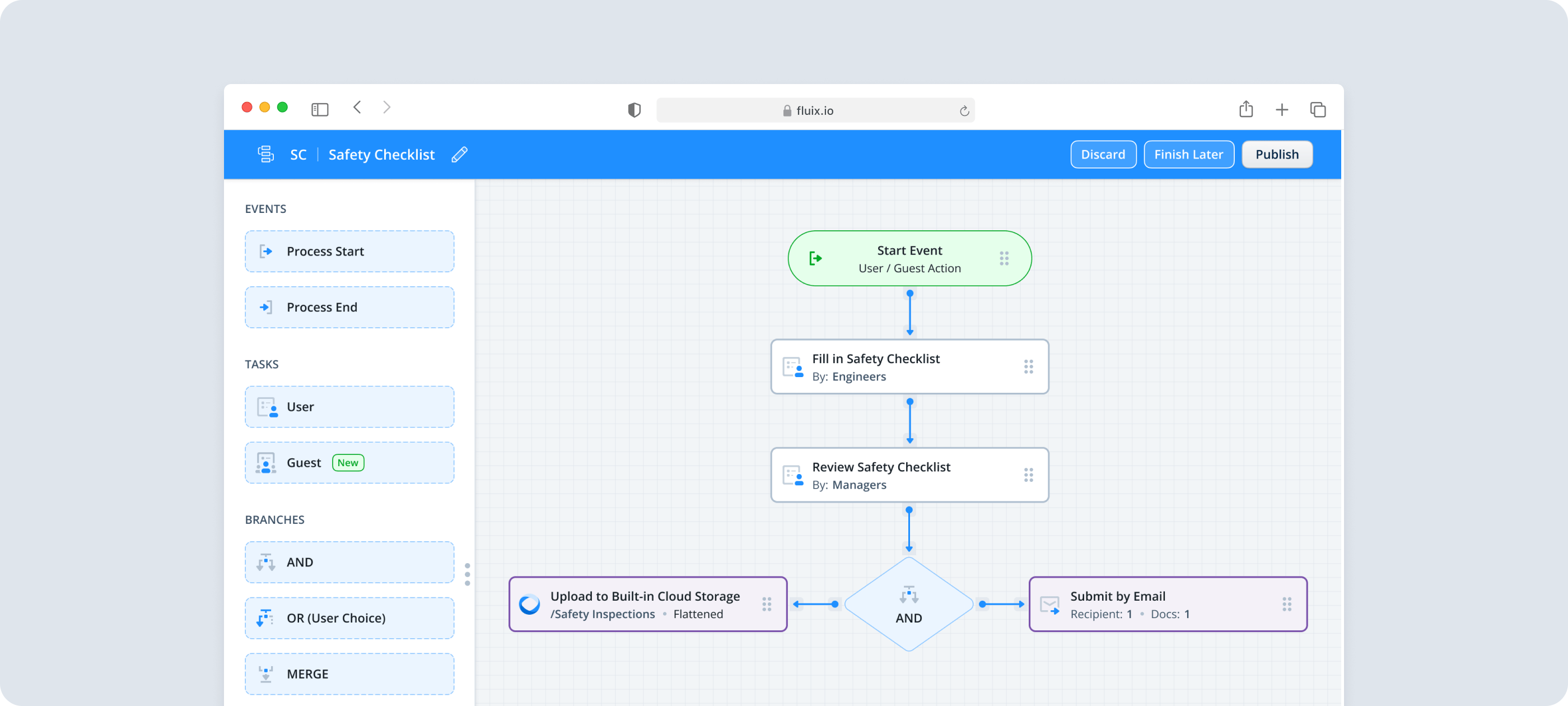 Once the form is filled and signed, Fluix takes care of the rest. Based on your workflow rules, it can: