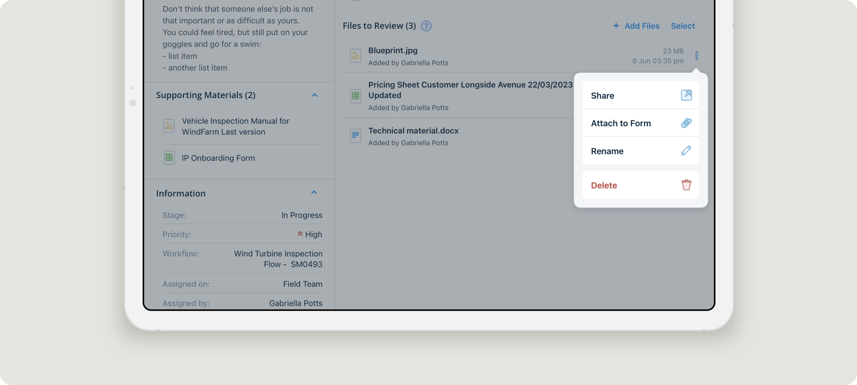 In any workflow, tasks often come with supporting files, images, and additional data that provide crucial context to the task.