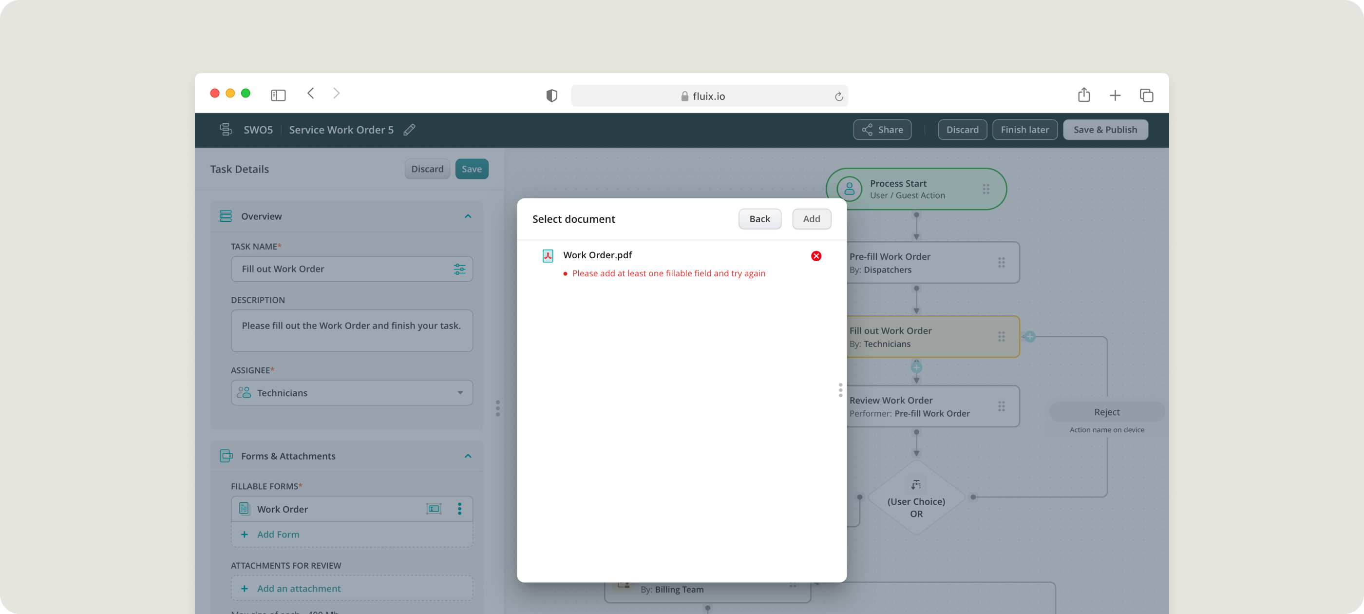 If you upload a PDF that isn’t compatible with Fluix, an error message will explain exactly what you need to fix.