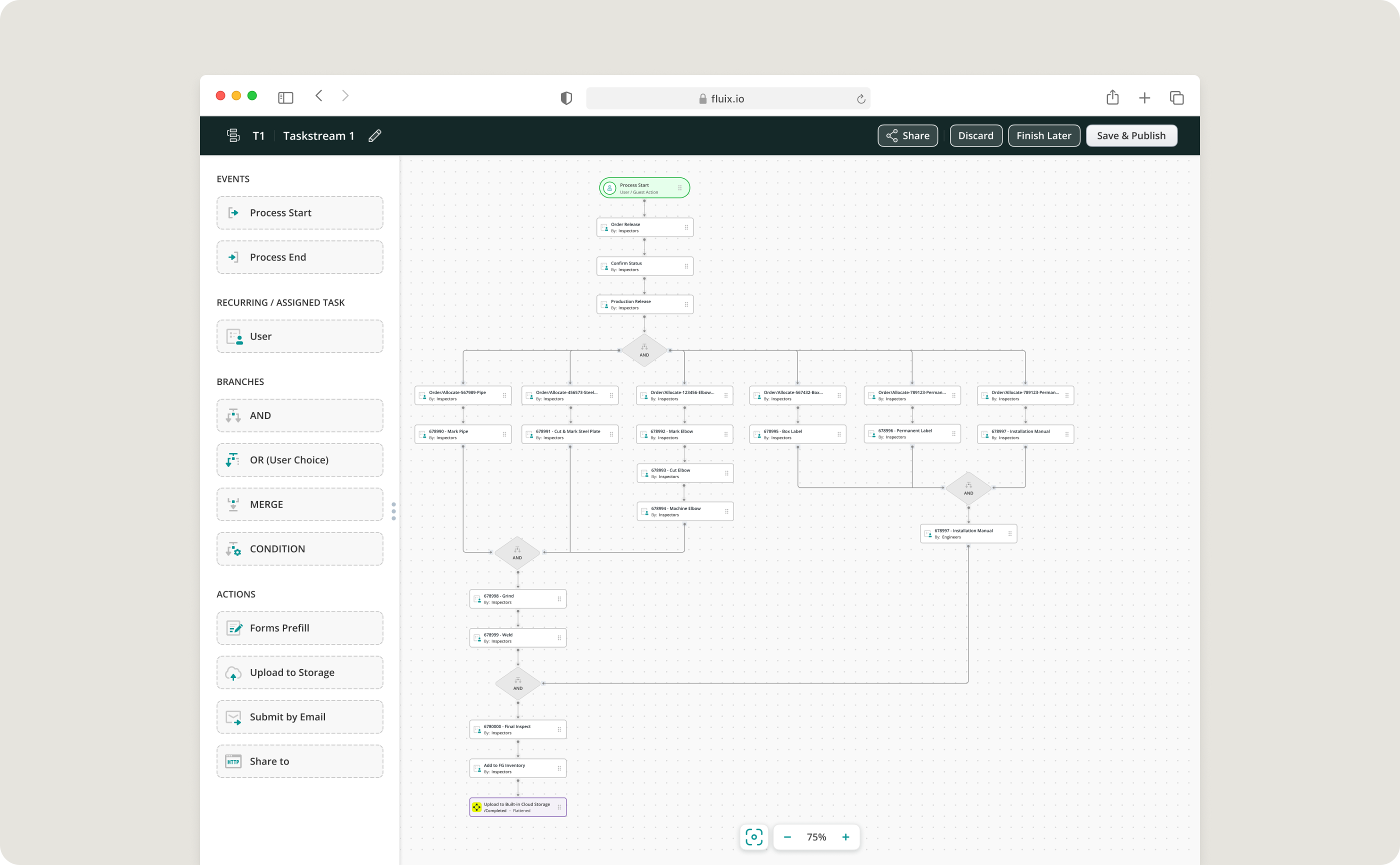 Or go dynamic, letting the flow change based on what your team reports. Say an inspector flags a hazard – Fluix automatically sends it to a supervisor. If not, it goes straight to storage.