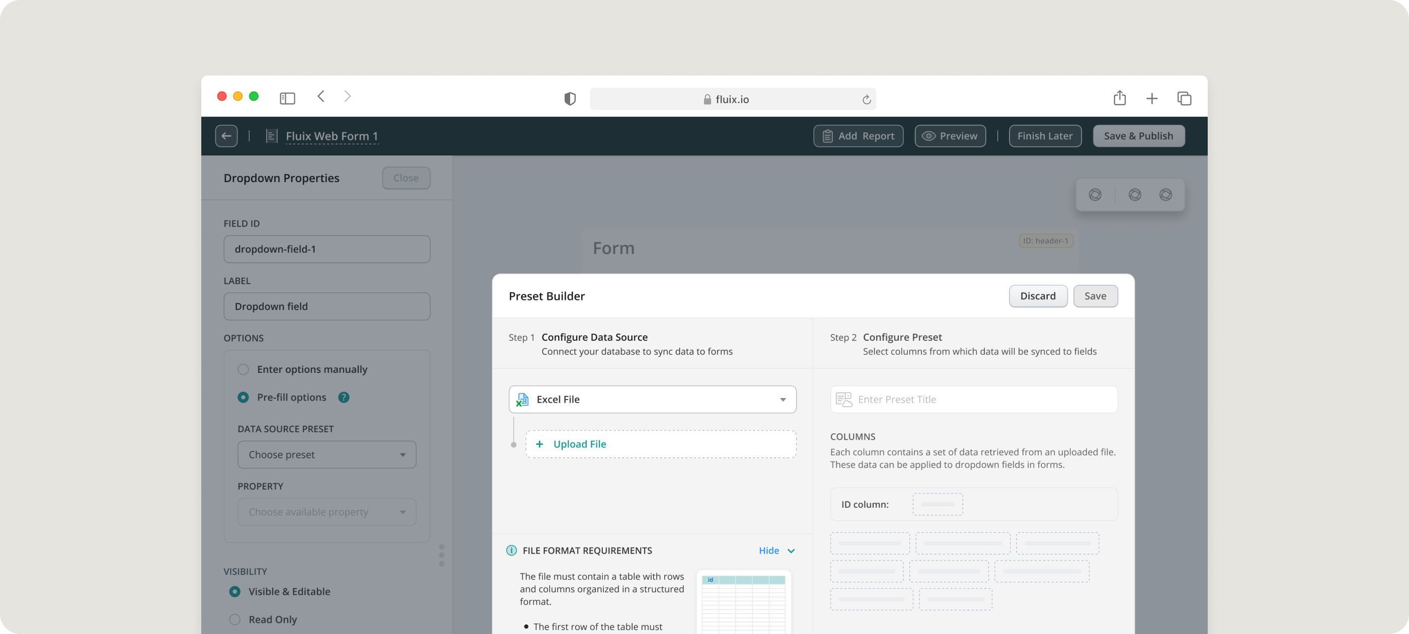- For Admins: Link your CSV or Excel file to Fluix and map data directly into dropdowns and text fields. That means less manual setup and way fewer mistakes.