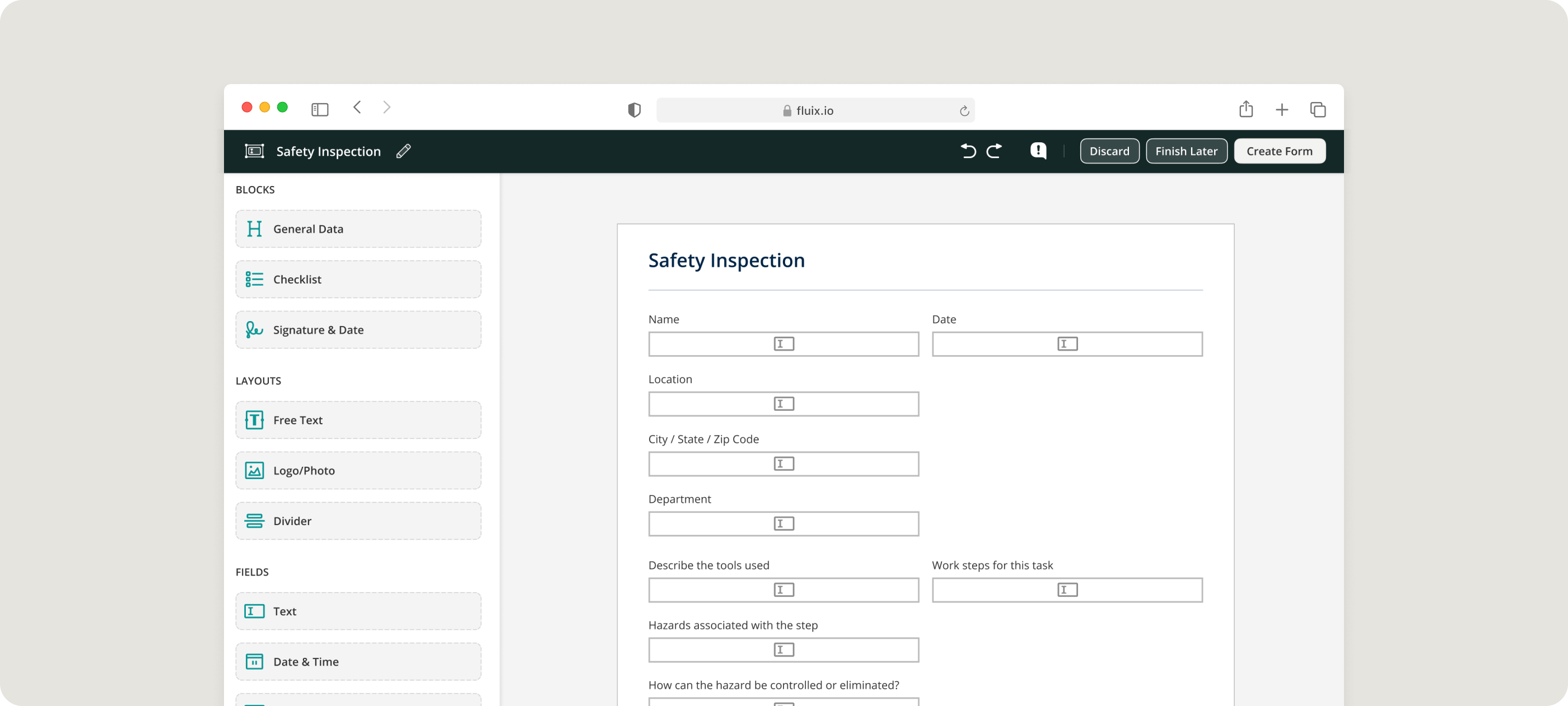 You can replace paper inspection with dynamic, mobile-friendly forms tailored to your inspection protocols. Fluix lets you build checklists for any type of survey, from equipment audits to safety observations, with zero coding.