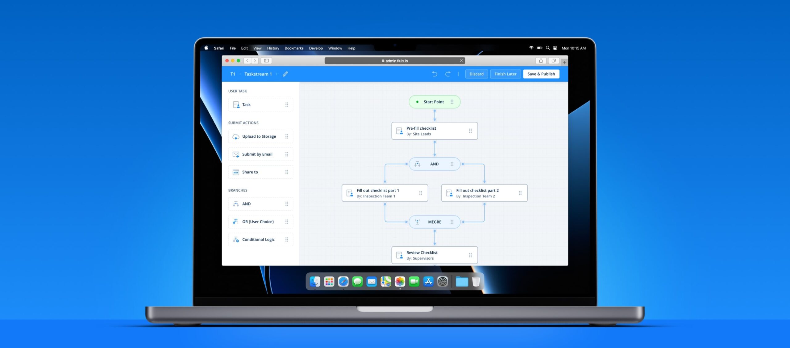 A workflow is a series of tasks performed by the team to achieve a specific outcome for your business. Fluix automates these tasks by bringing data, teams, and customers together in one place.
