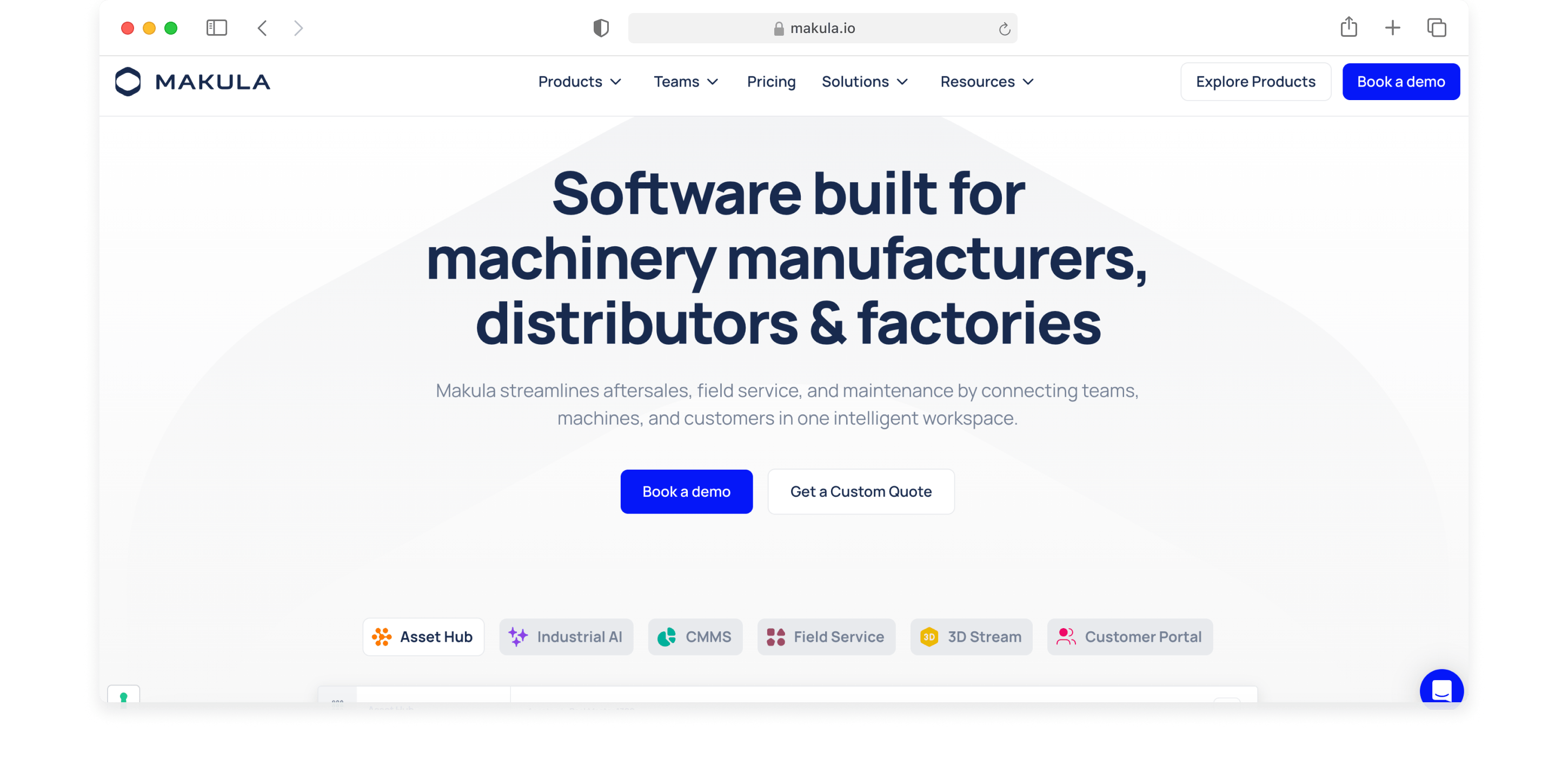 What sets Makula apart is its modular, machine-centric approach designed specifically for industrial service and aftersales teams. Unlike traditional CMMS platforms. The product suite includes CMMS, Field Service Management, AI-powered documentation tools and 3D model streaming.