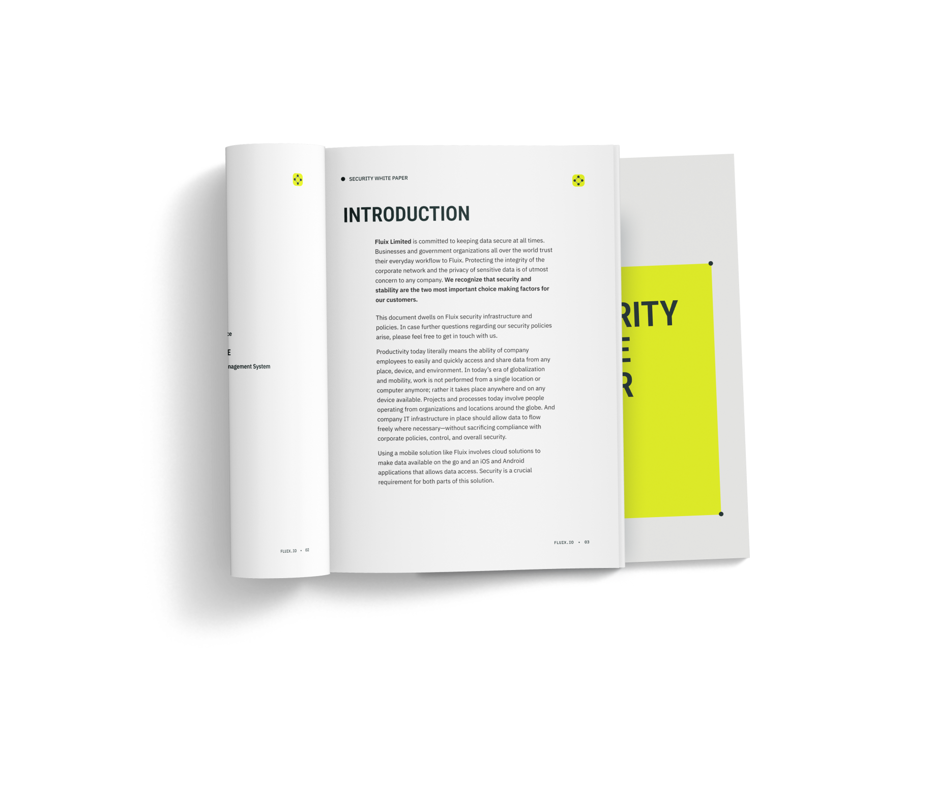 This document dwells on Fluix security infrastructure and policies. In case further questions regarding our security policies arise, please feel free to get in touch with us.