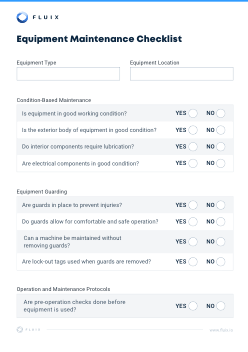 Condition-based maintenance factors in the condition, age and operational hours of machinery, including the distance traveled by fleet vehicles. You may prefer to start with a maintenance checklist template designed for a particular industry.
