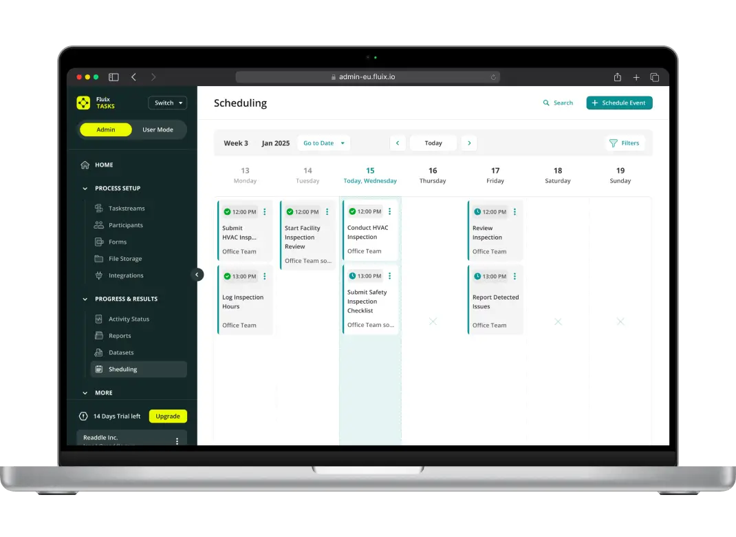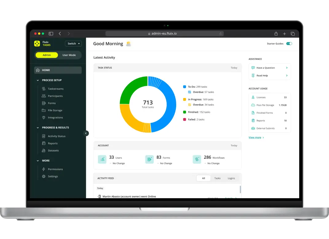 Fluix is ISO 27001-certified, meaning that not only do we protect your data, we constantly check for potential risks, and ensure that the security we have in place is ironclad.