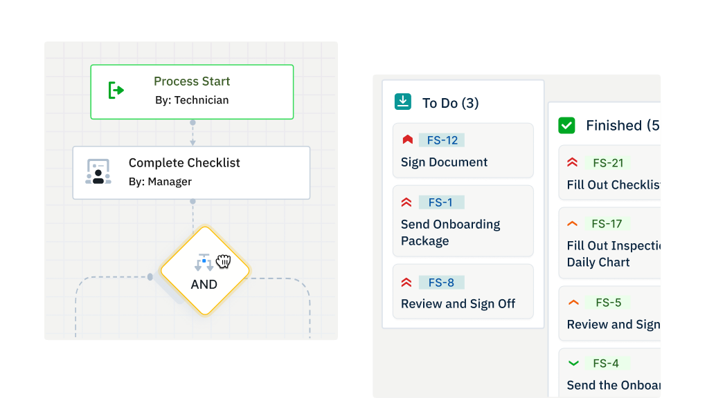 Process-centric workflows that organize tasks into actionable steps with forms, assignments, and progress tracking