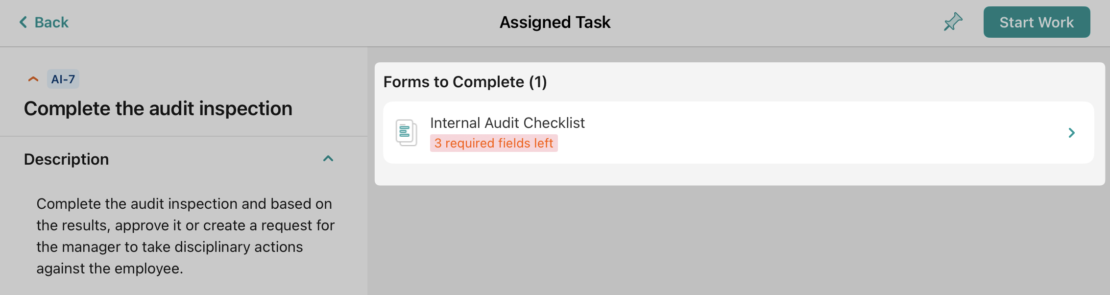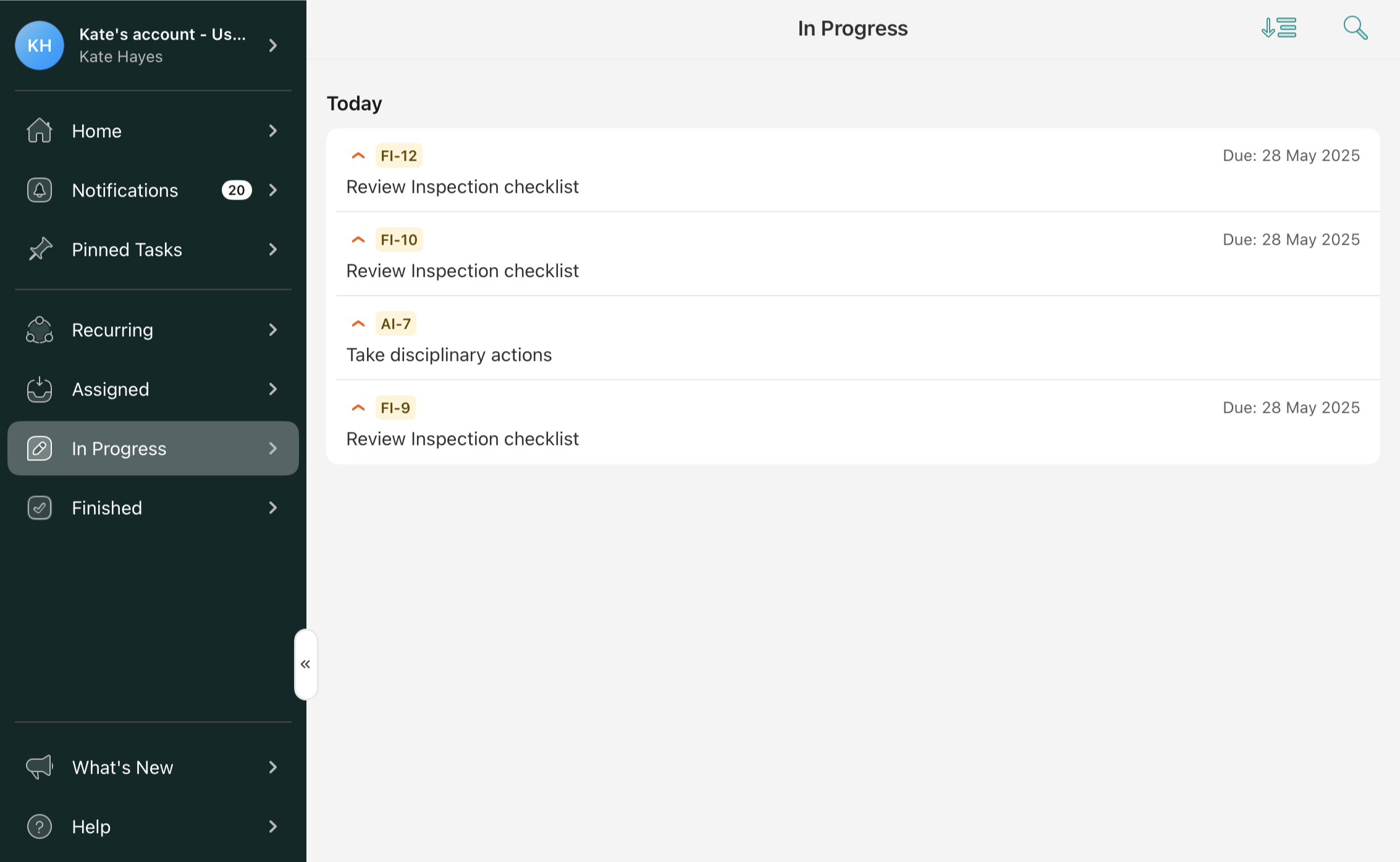 Once you start working on any of the tasks from the Recurring or Assigned tab, the task will be automatically moved to the In Progress tab and will stay there until you finish it.