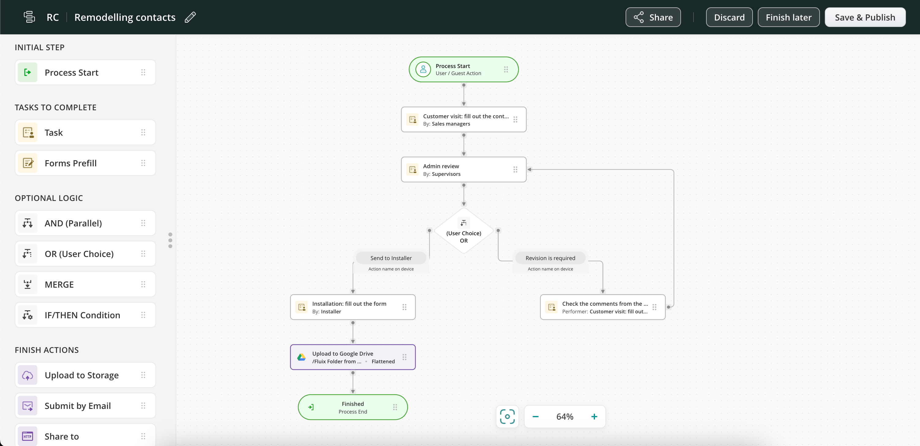 Here’s an example of how the full setup will look in Fluix’s workflow builder: