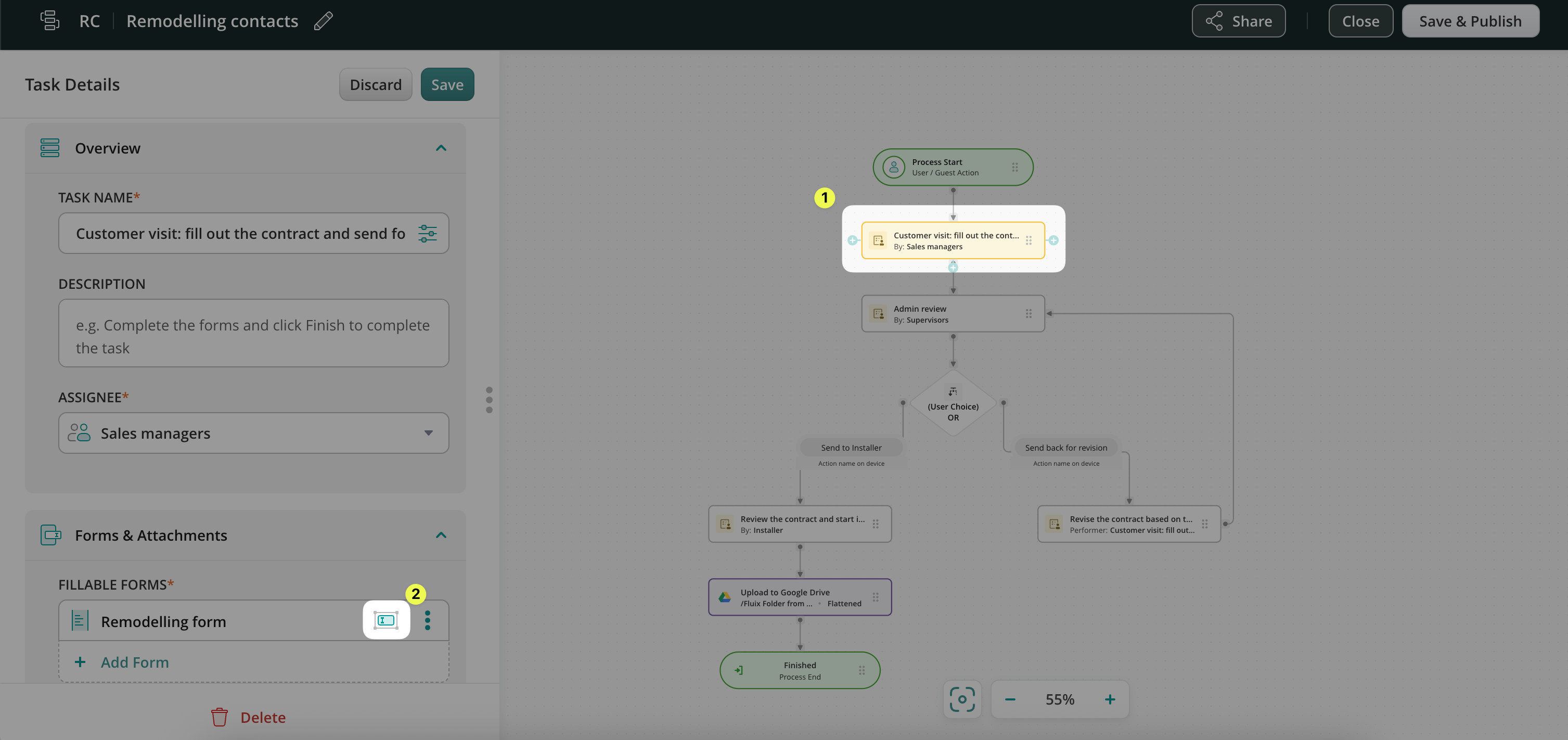 2. Click on the first task in your process (e.g., the Sales Manager’s task).