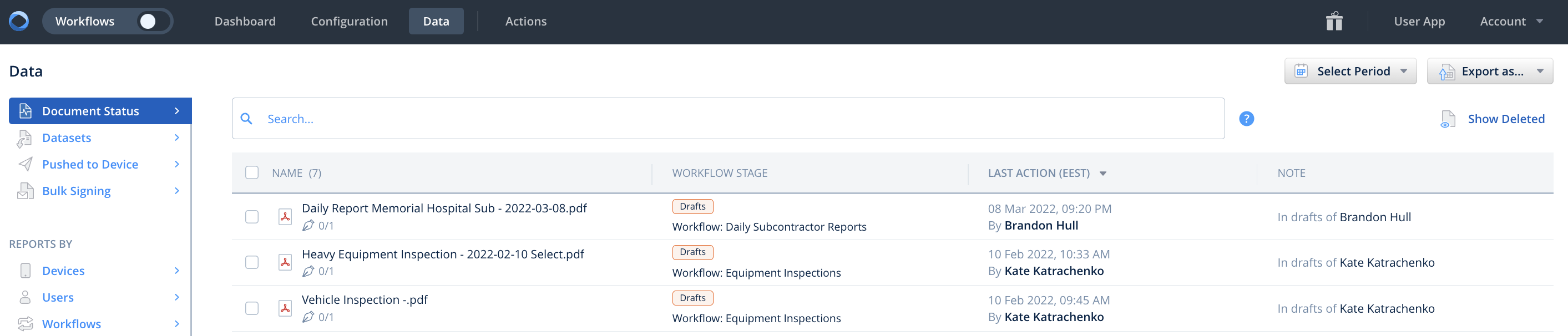 Right now, we’re in the Admin Portal  – the heart of Fluix – where you can configure any kind of workflow, manage app users, organize file structure and storage and define file-sharing settings.