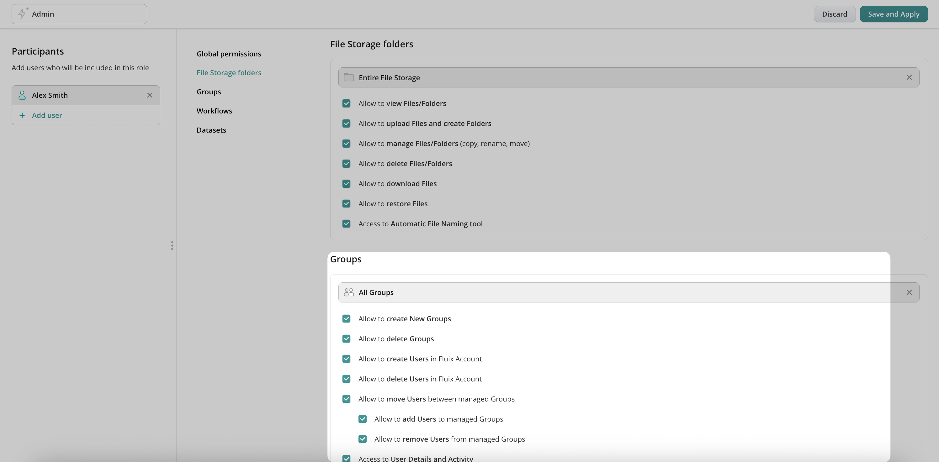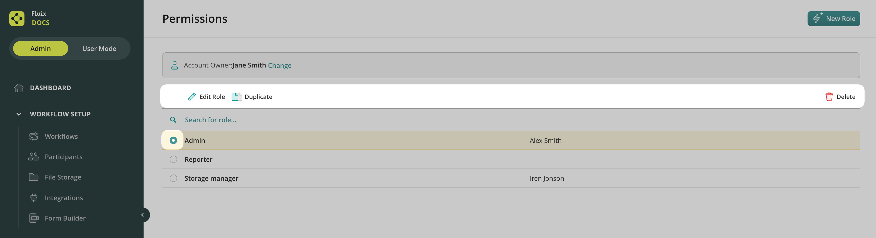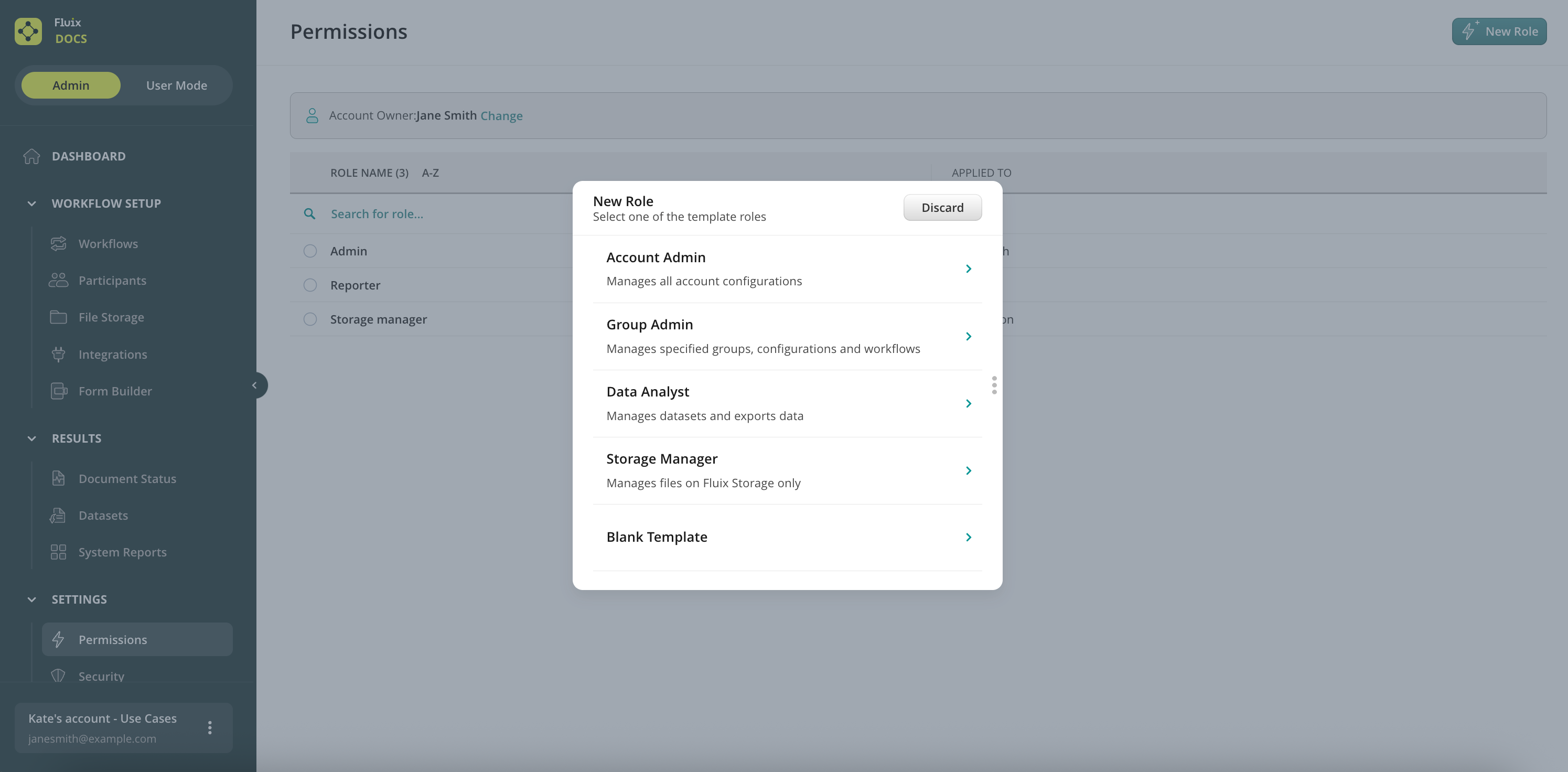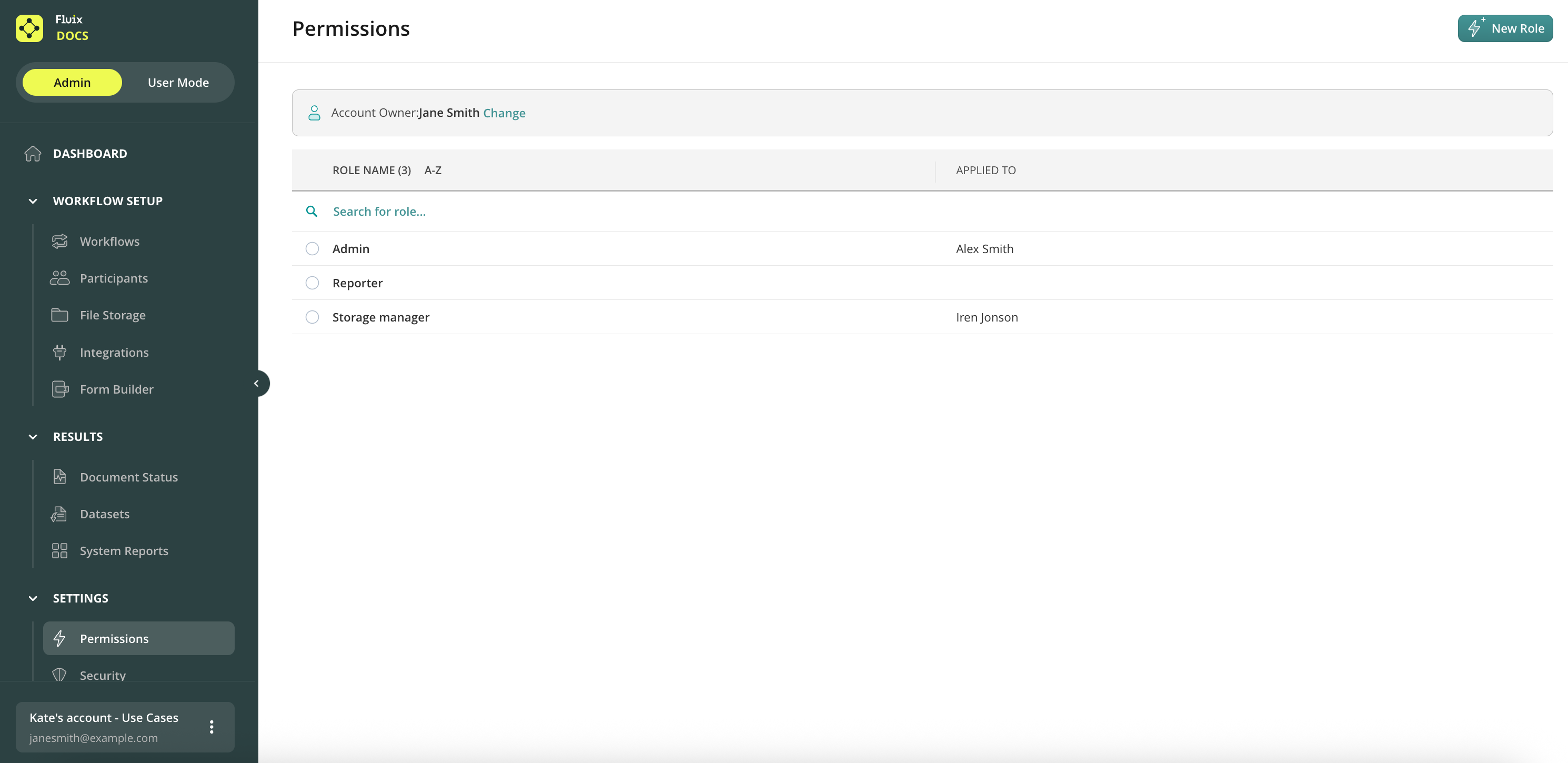 With roles, you can be very specific in providing your Fluix team members with the rights to access the Fluix Admin Portal and manage document flow.