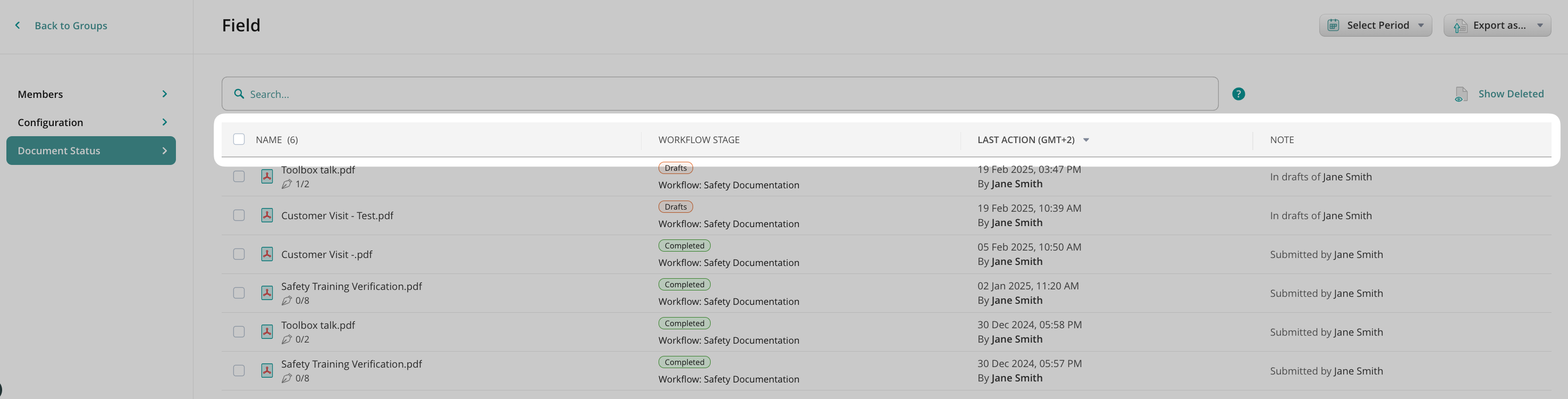 • Training verifications.