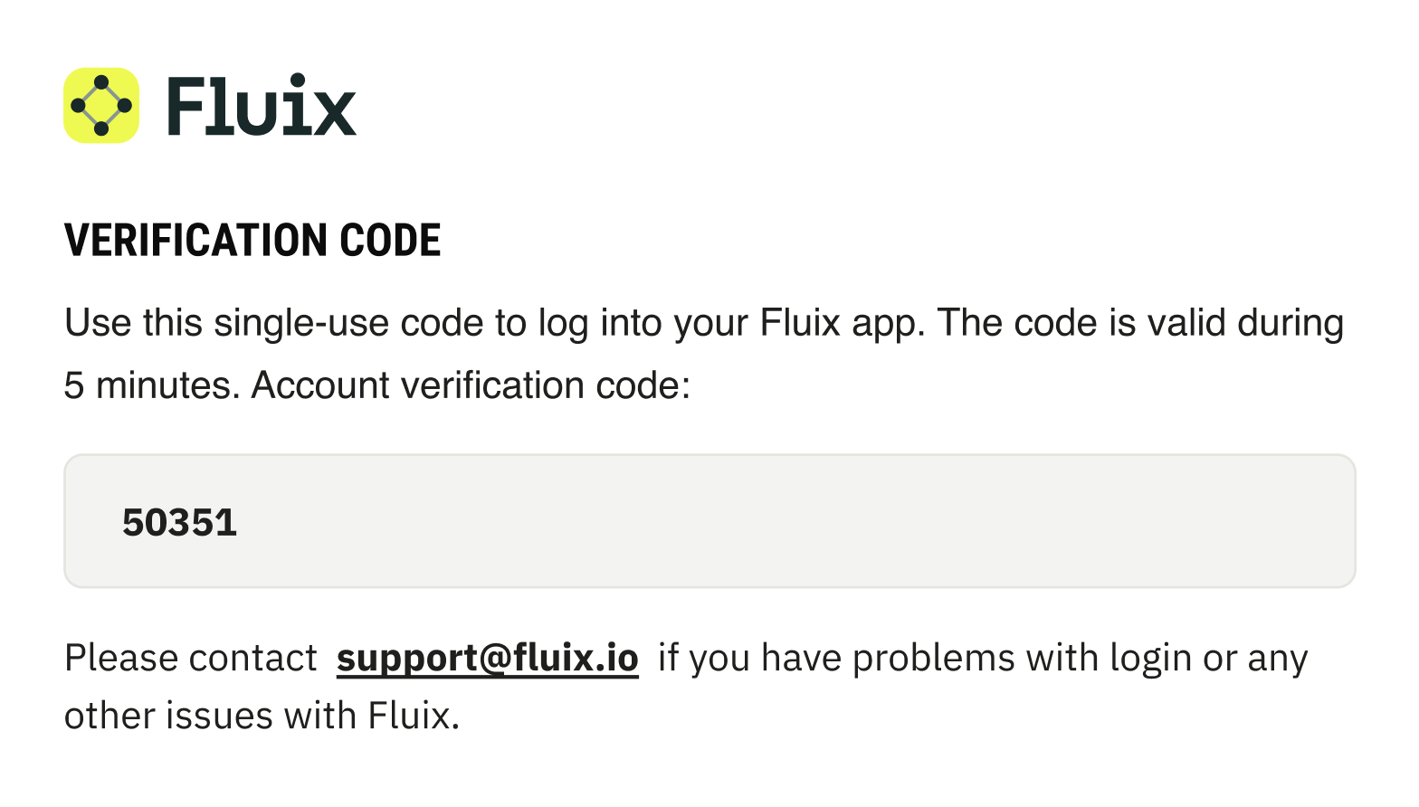 When Email 2FA is enabled, users must enter their email address and password, along with a one-time security code sent to their email, before they can sign in to the Fluix Tasks app or the Web User App. A new security code is sent each time the user logs in, and it remains valid for 5 minutes before expiring.