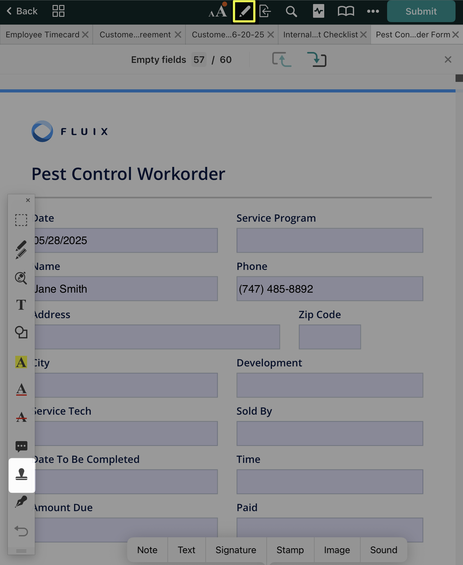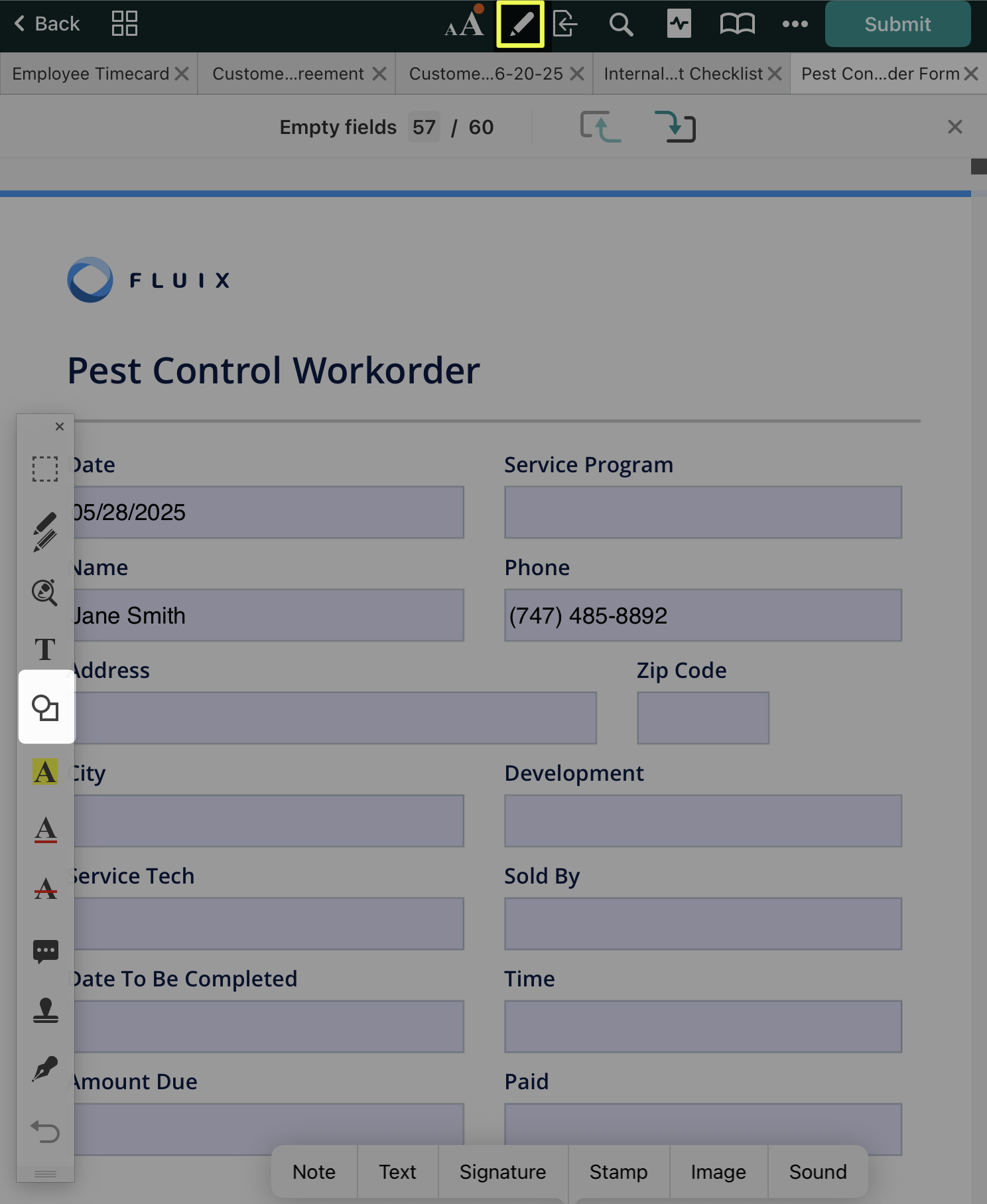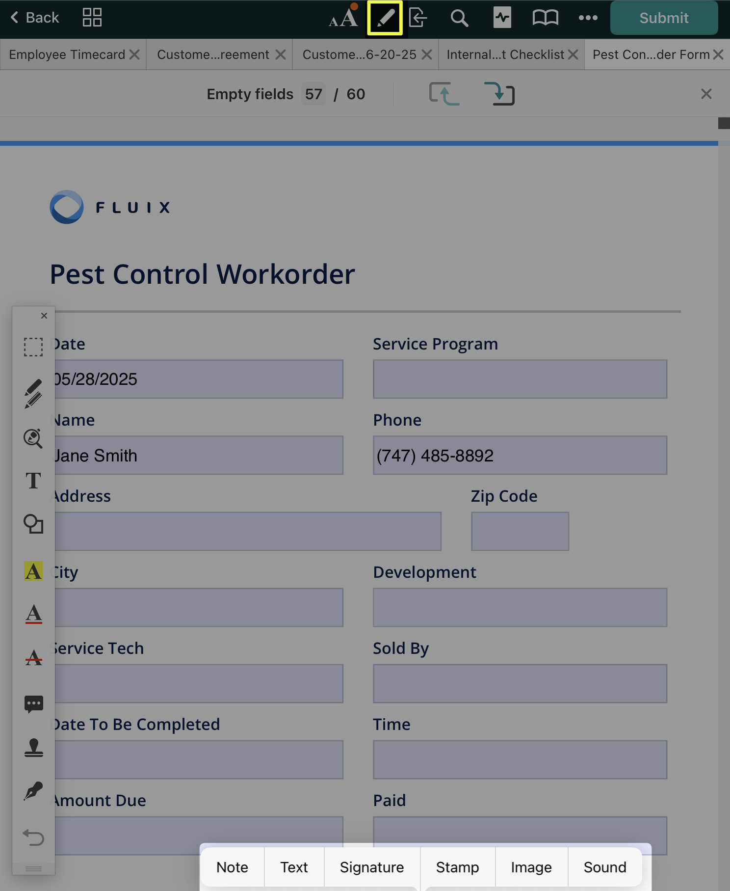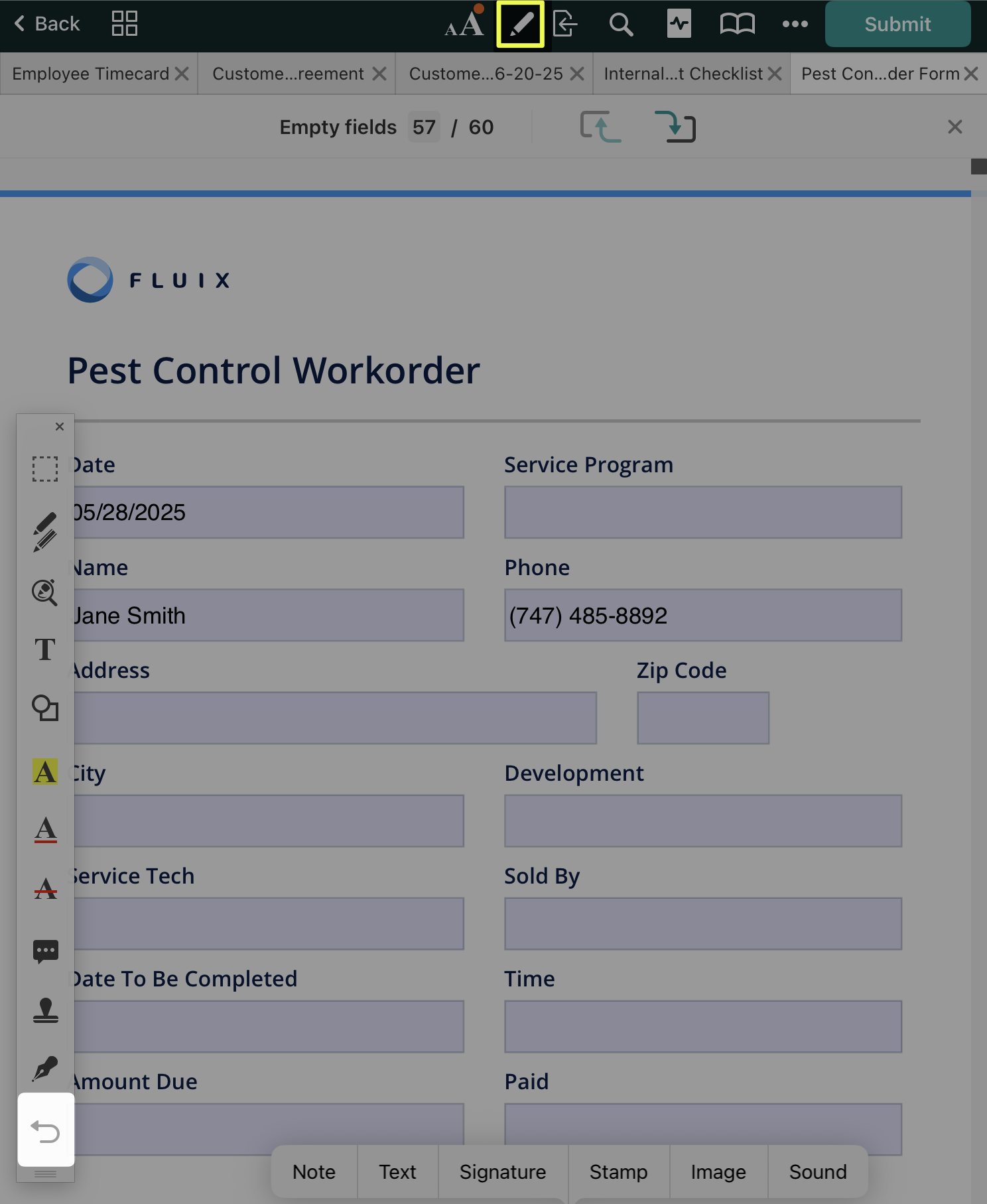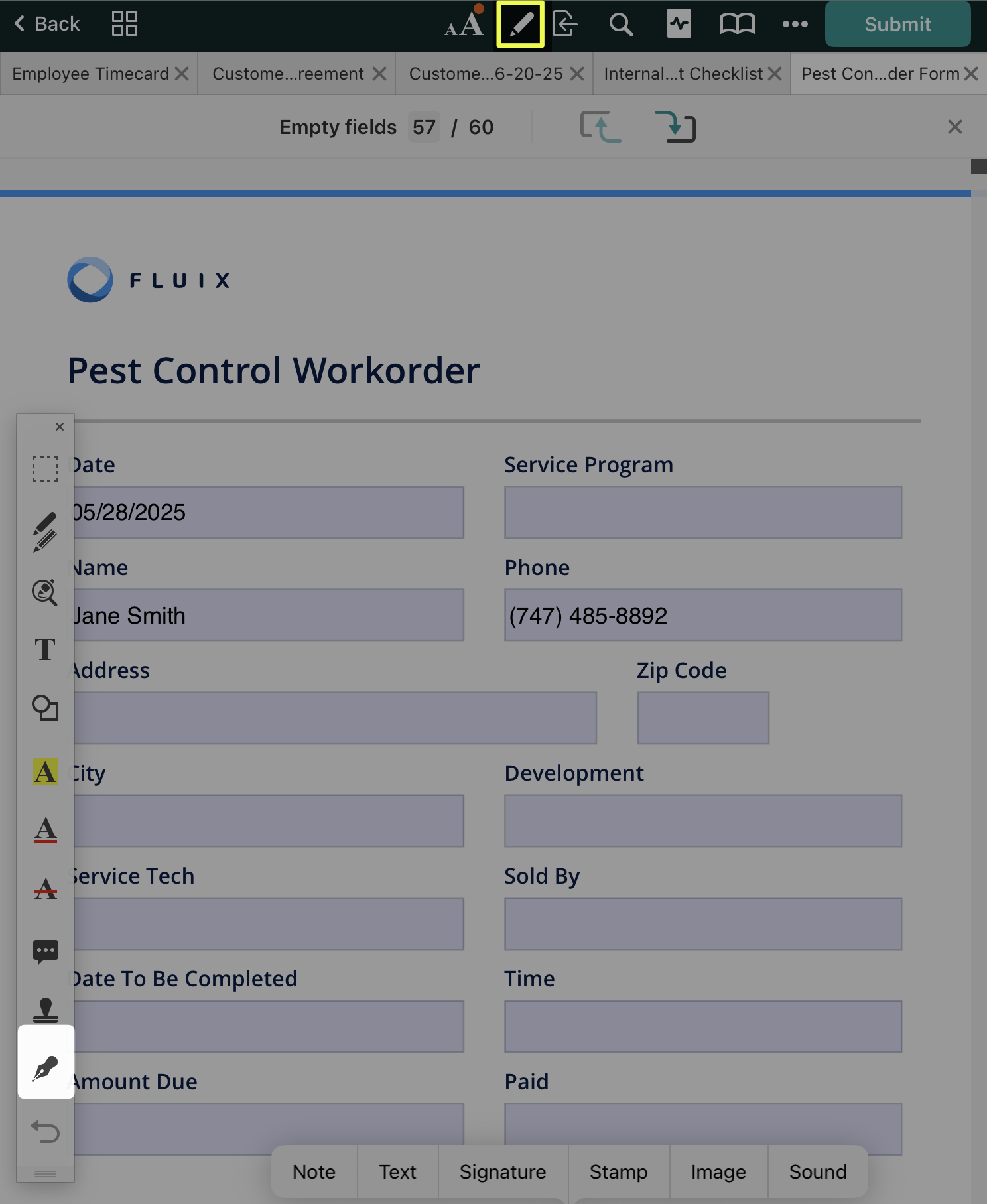 When ‘Customer Signature’ is selected, a signature can be created for one-time use. This signature is not saved within Fluix and cannot be copied to another document.