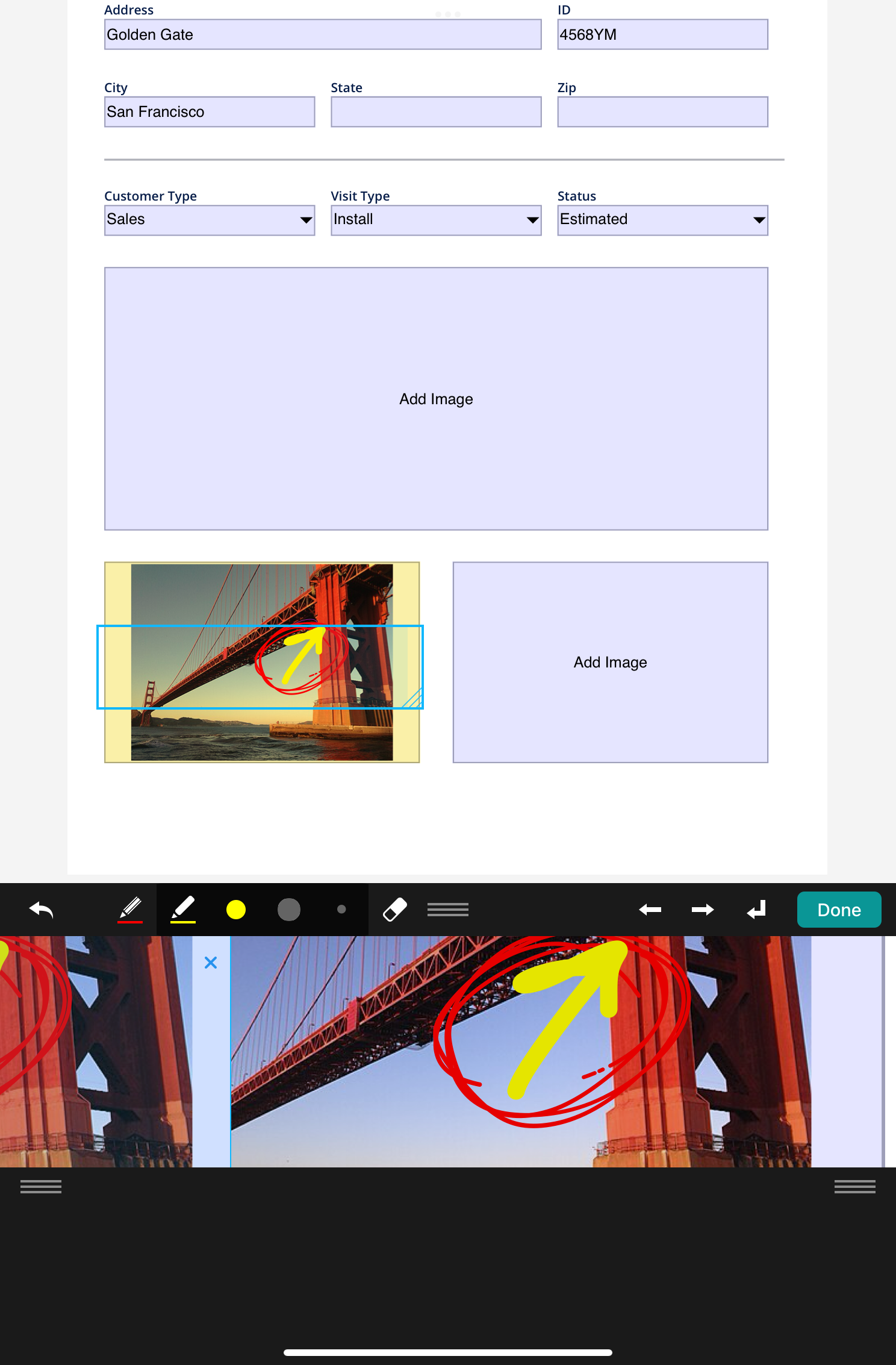Add an image option. Select ‘Image’ from the pop-up menu, and then choose a picture from your iPad’s Camera Roll or take a photo. Tap on the picture to move or delete it. Tap and hold on the image to scale it.