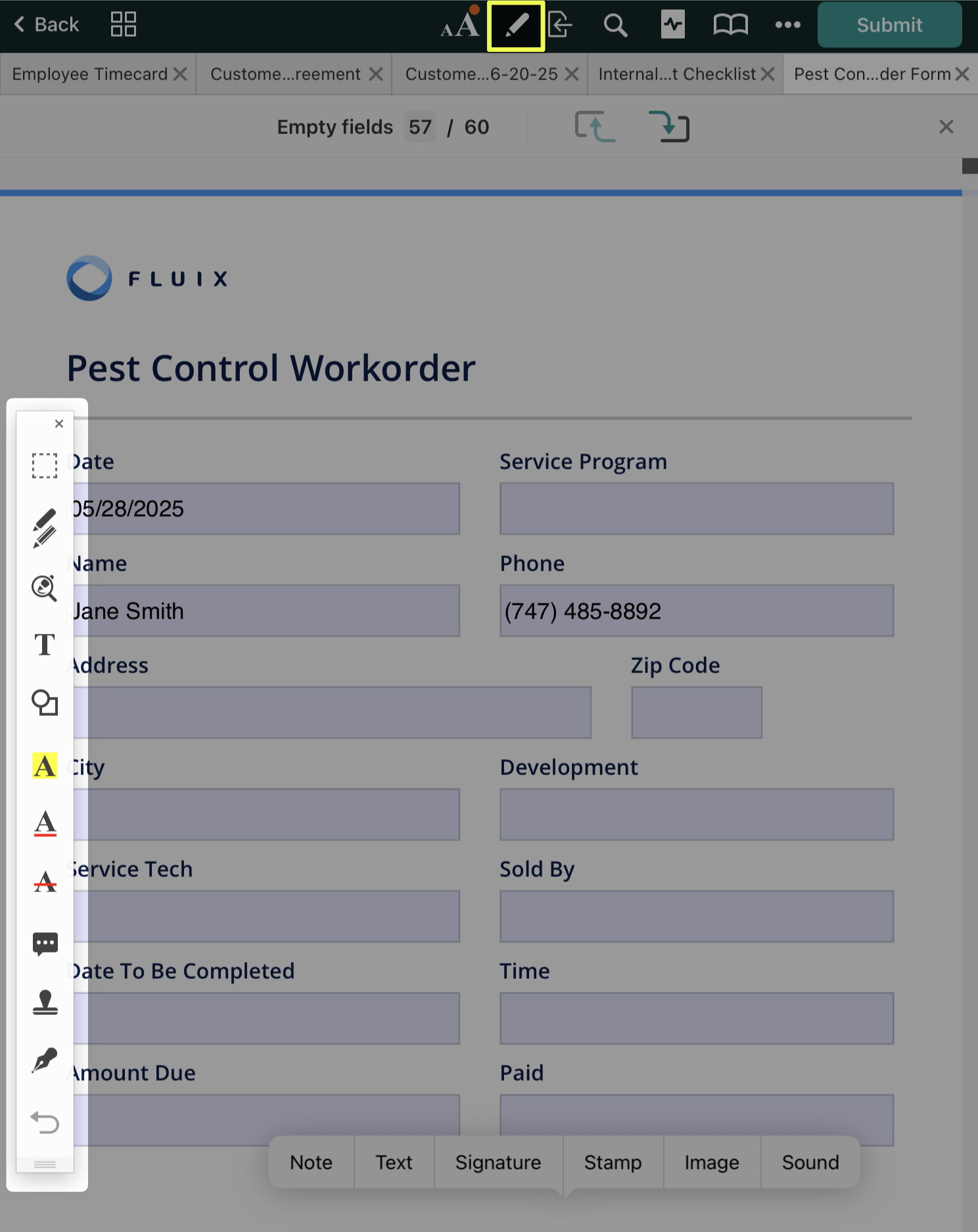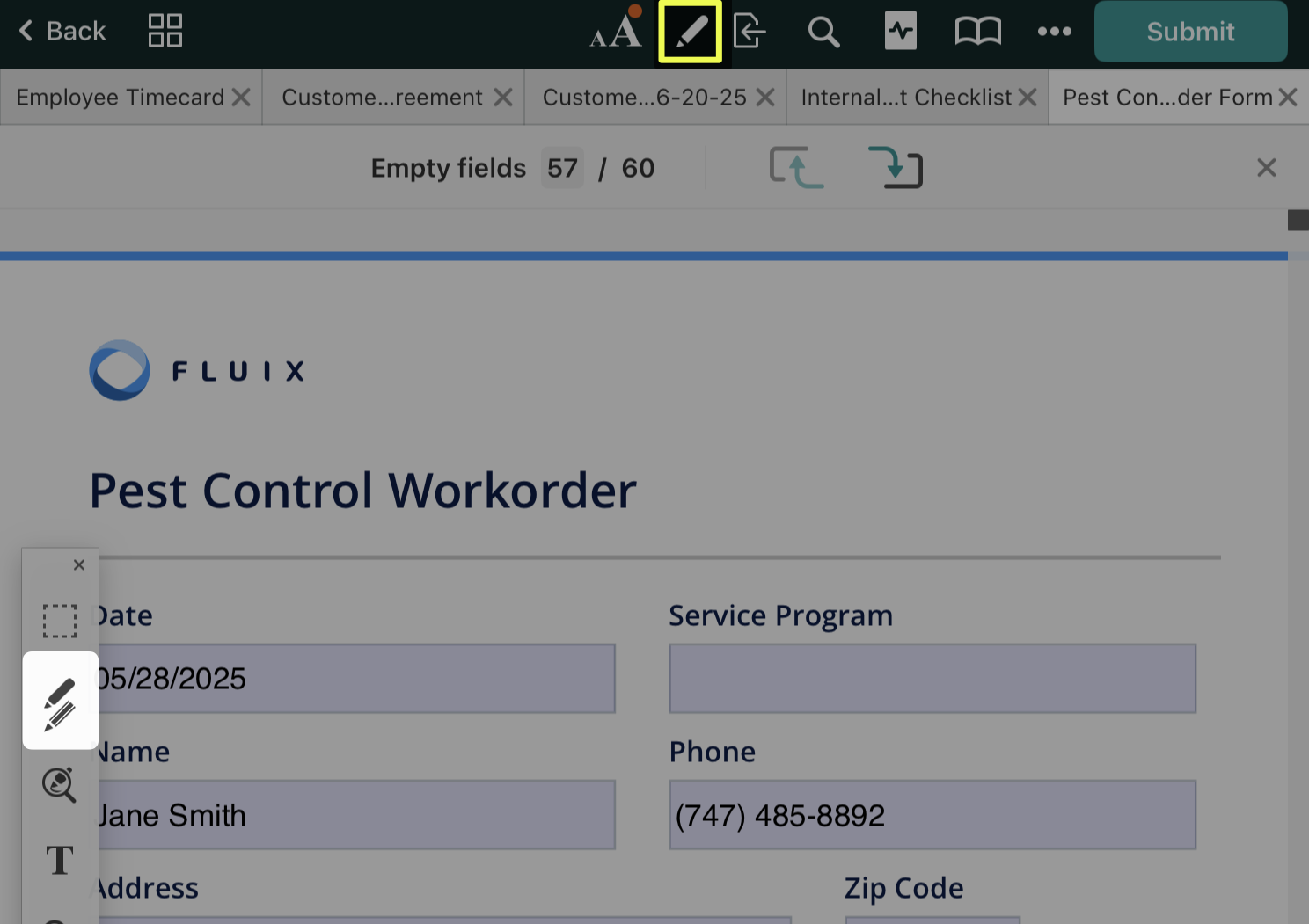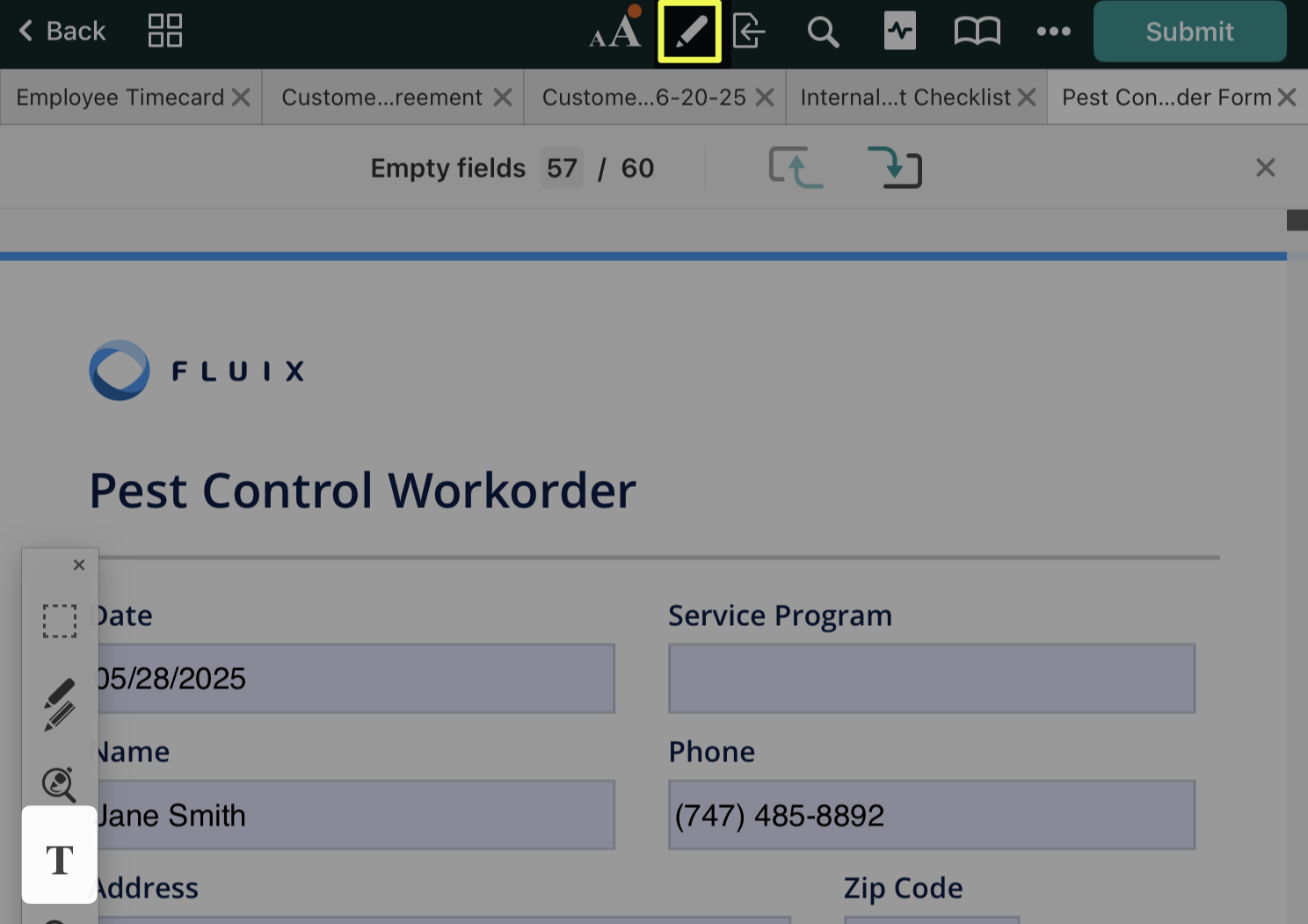 In the Fluix app, open the PDF you want to annotate and tap the icon at the top. On the left side of your screen, the annotation toolbar will appear. To hide the annotation toolbar, tap  again.
