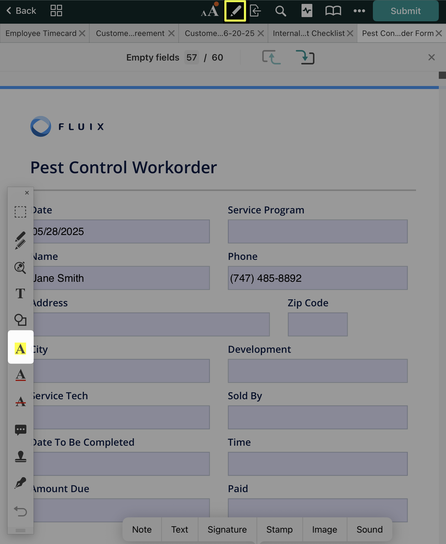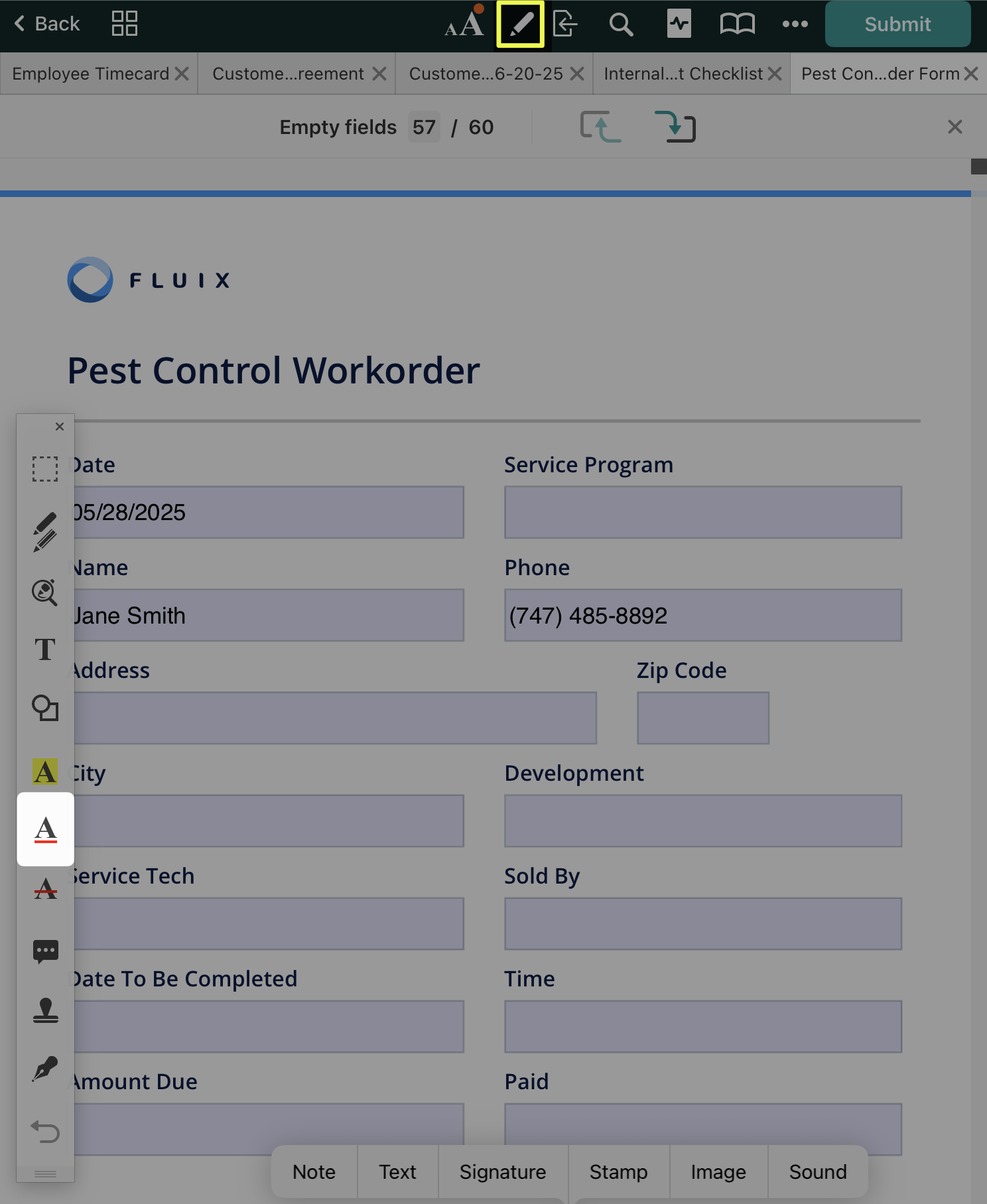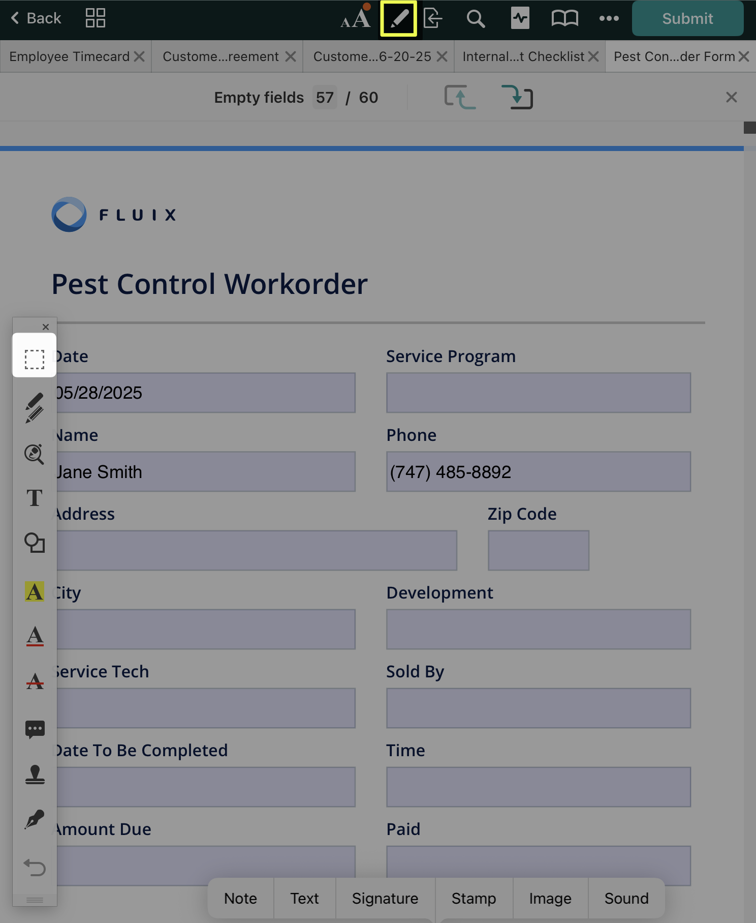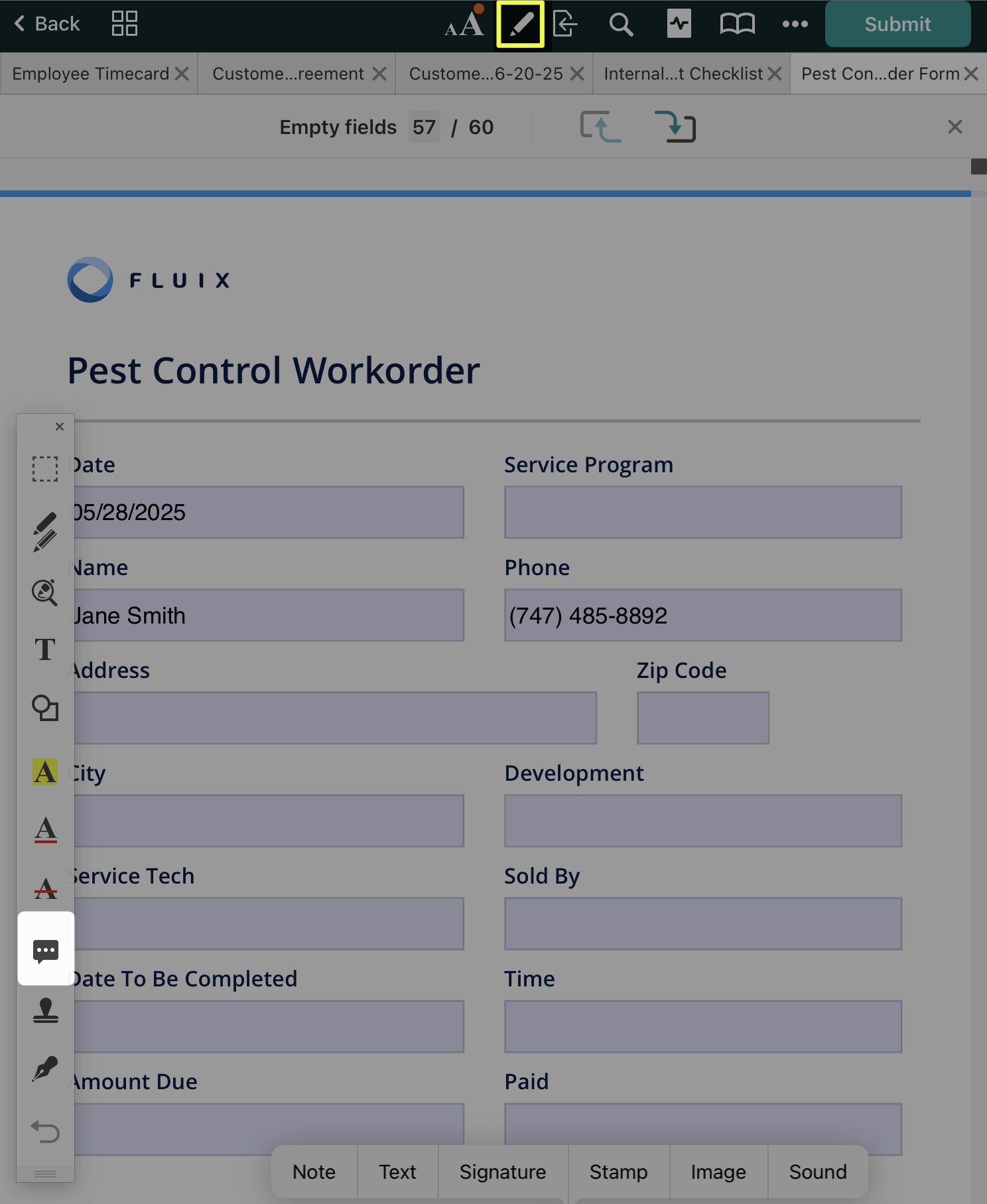 In the Fluix app, open the PDF you want to annotate and tap the icon at the top. On the left side of your screen, the annotation toolbar will appear. To hide the annotation toolbar, tap  again.