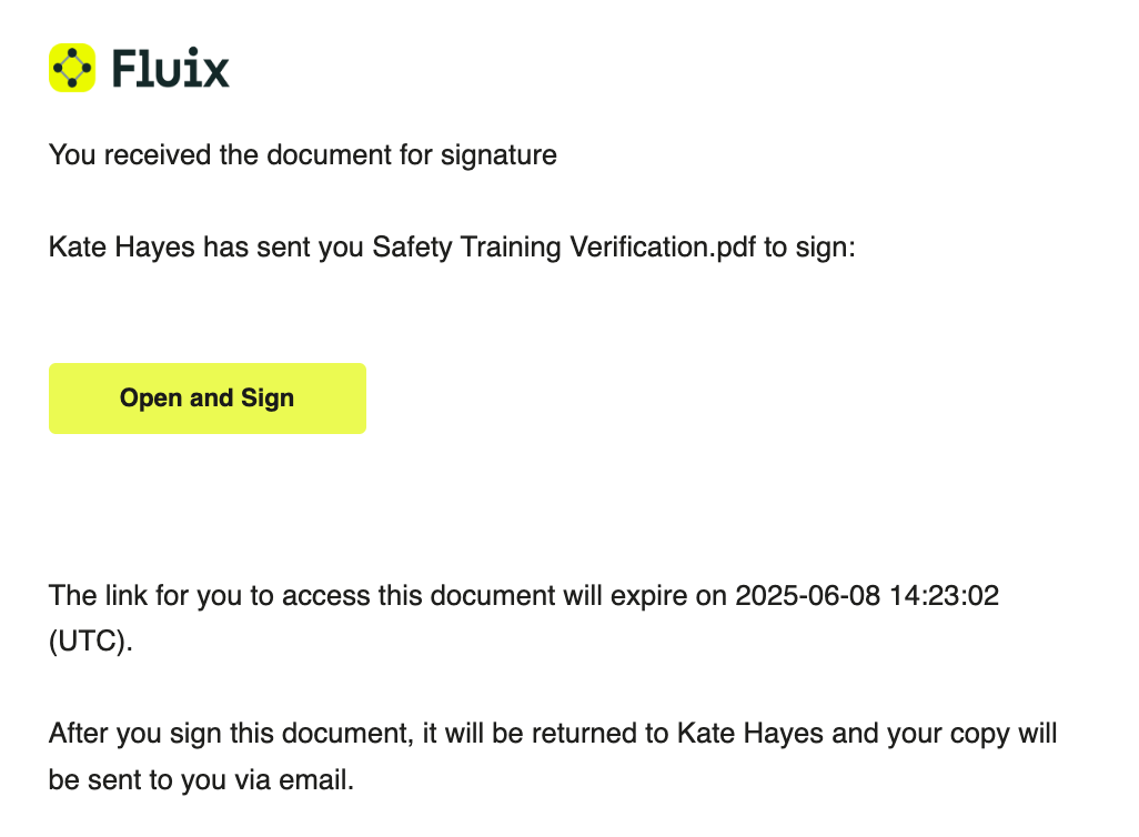 A signer will receive the following email about a document that needs to be signed: