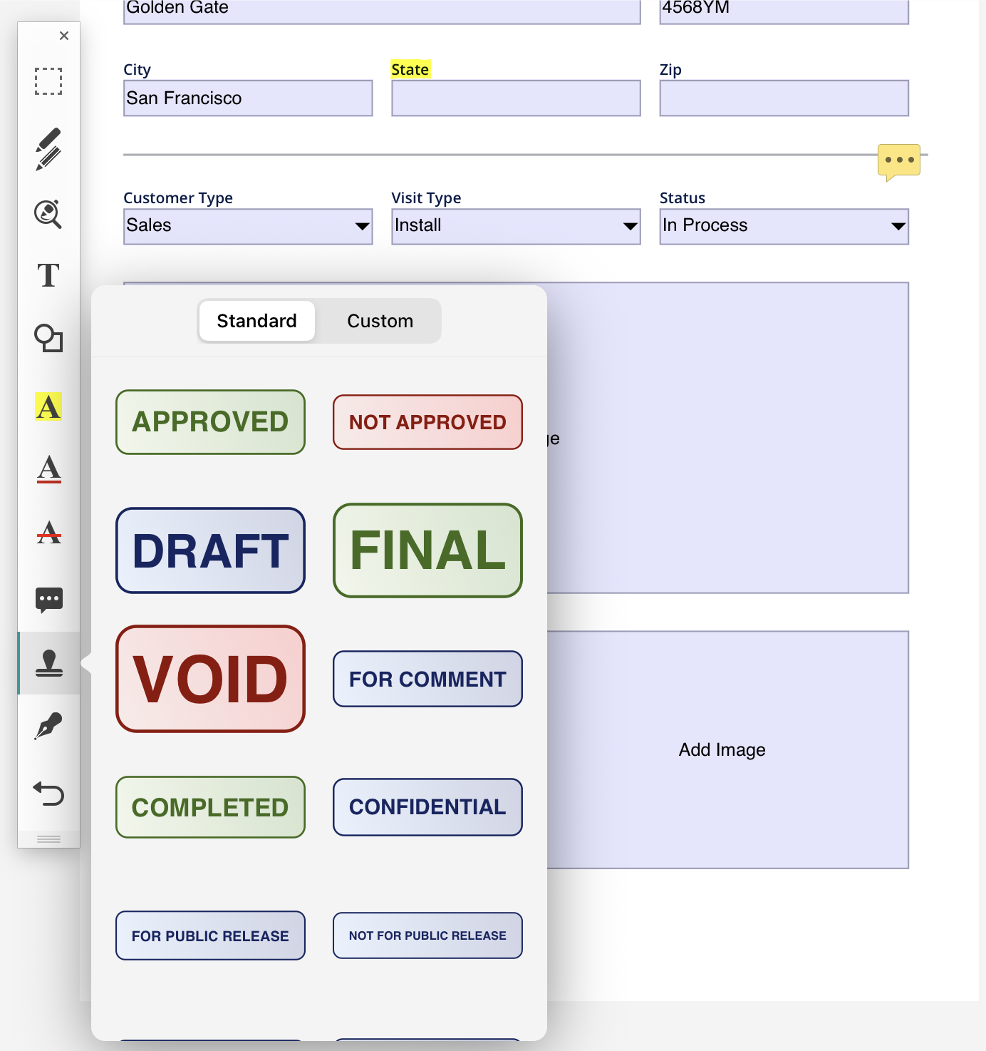 Add a standard or custom stamp to your PDFs.