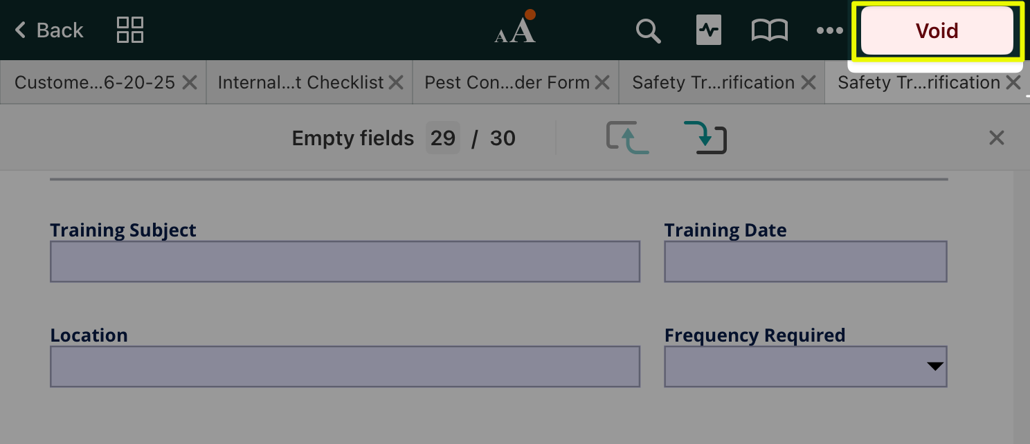Tap  and select ‘Clear form.’ This option is available only for fillable PDF forms.