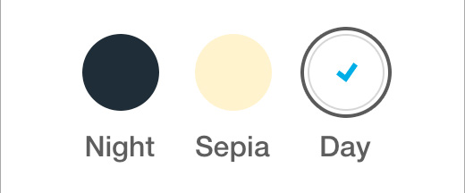 These themes improve your reading experience at different times of the day. You may select from three available modes: