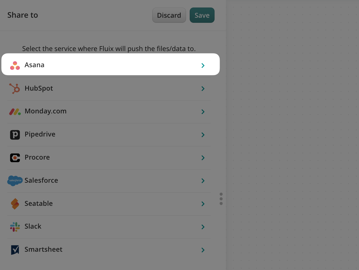 Click on the Share to element and select Asana among the list of third-party tools.