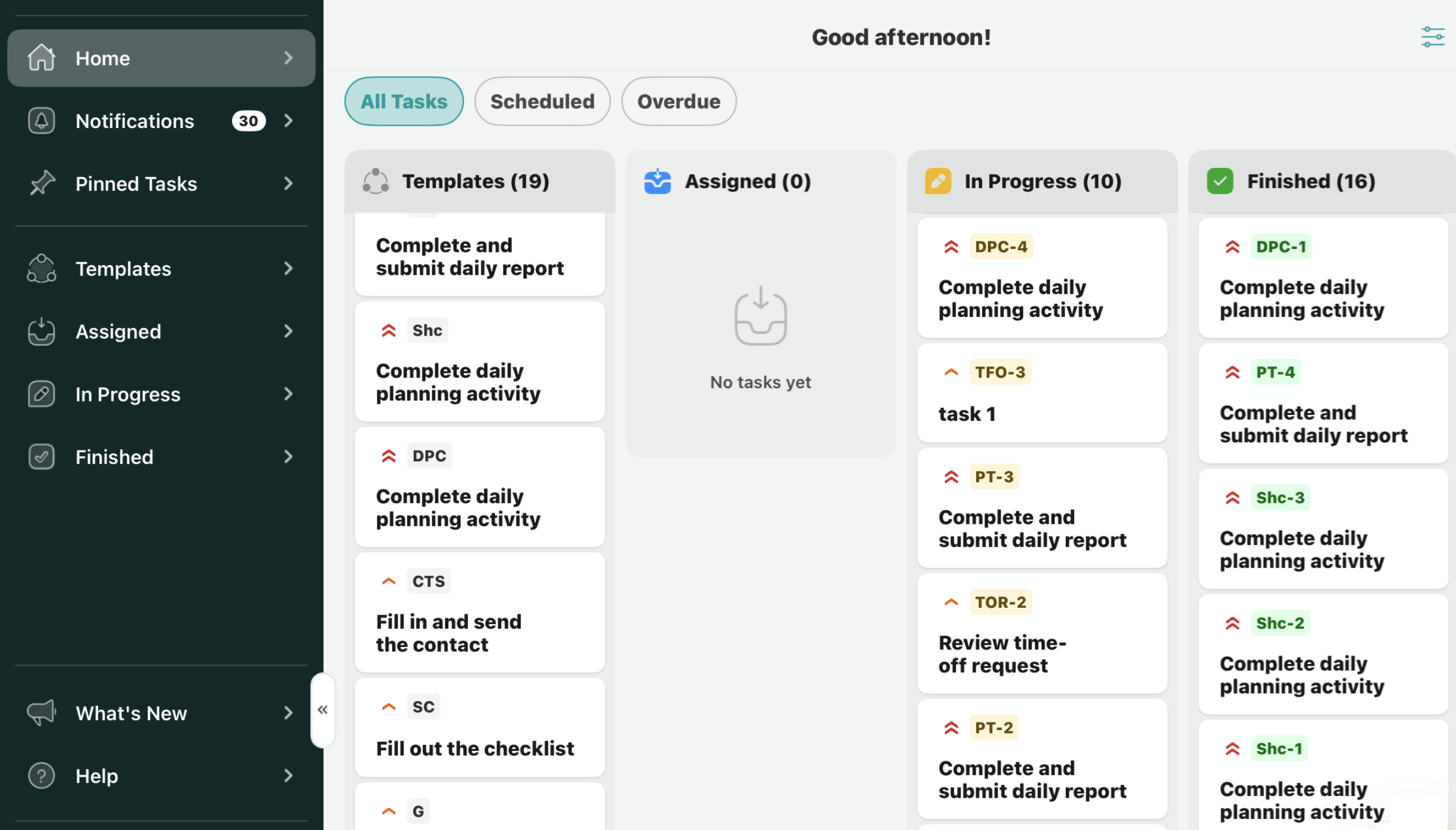 Templates – Ongoing tasks that are pre-configured by your company admin.