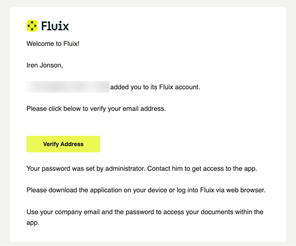 Once added to the Fluix account, a user will receive an email invitation to access Fluix via iPad, iPhone, and web application.