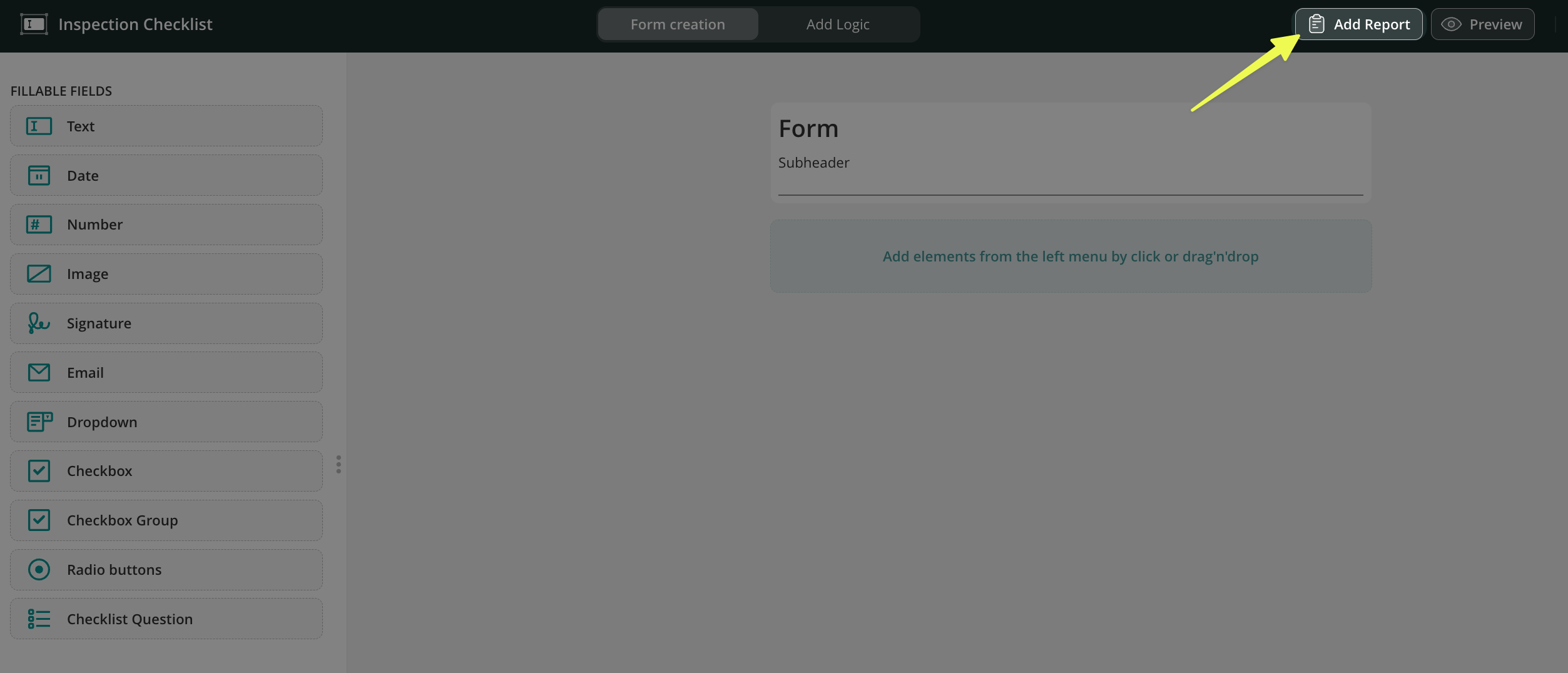 In the upper-right panel, you will see the Add Report tab. Here, you can configure the generation of reports from completed checklists, eliminating the need for manual copying and pasting, as well as double data entry.