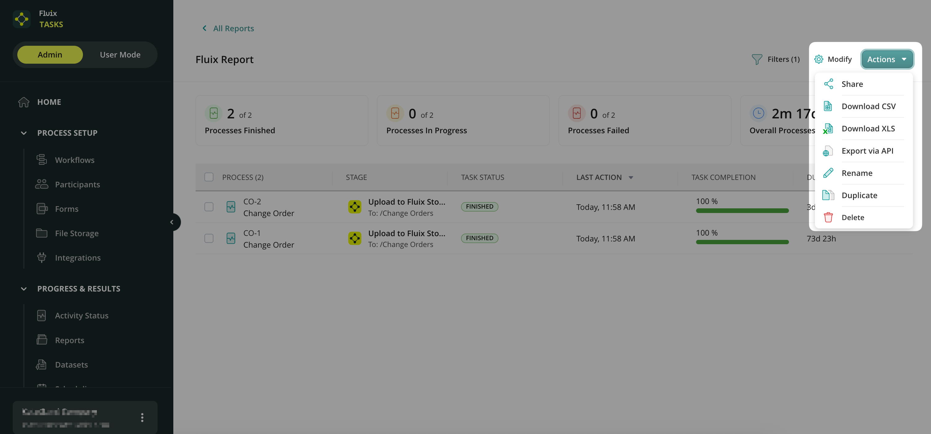 - To share the created report with other Fluix admins. Learn more about Reports ownership in this tutorial.