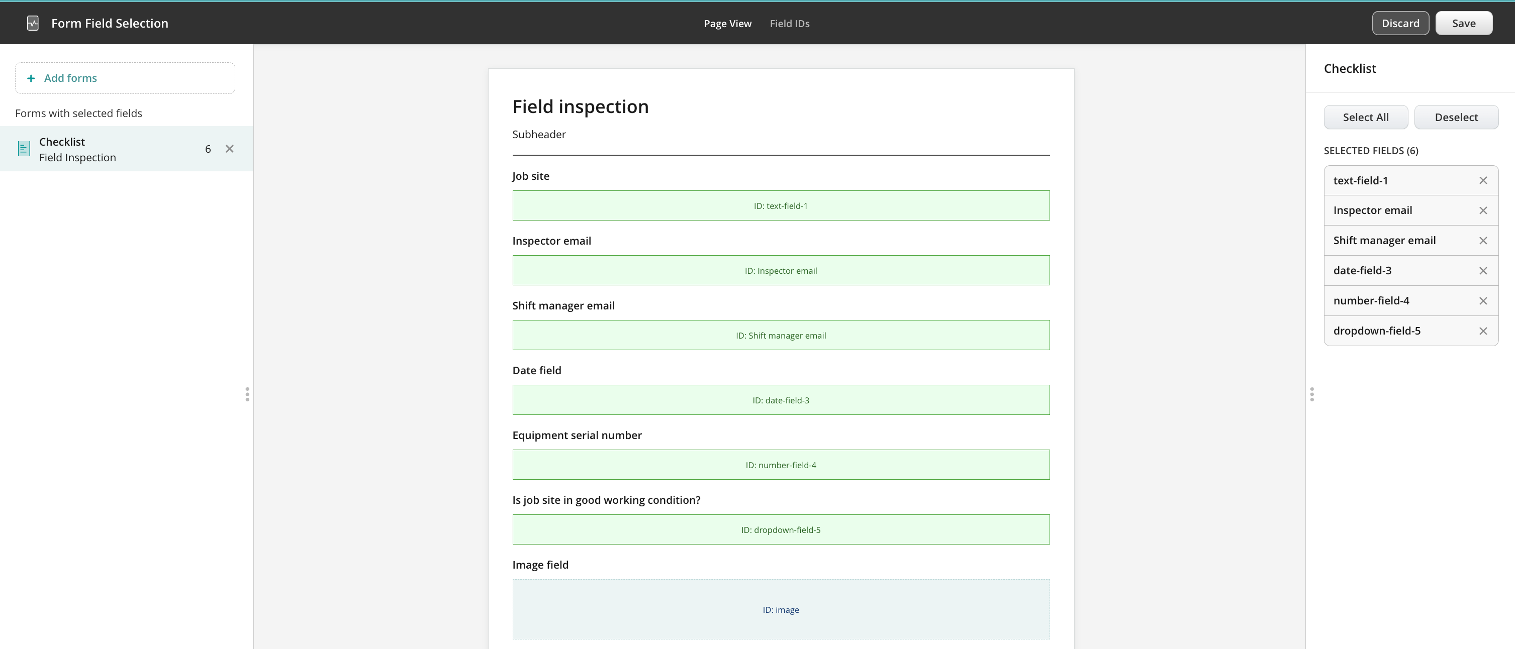 Select the workflow and Form from the dropdowns from which you would like to fetch data.