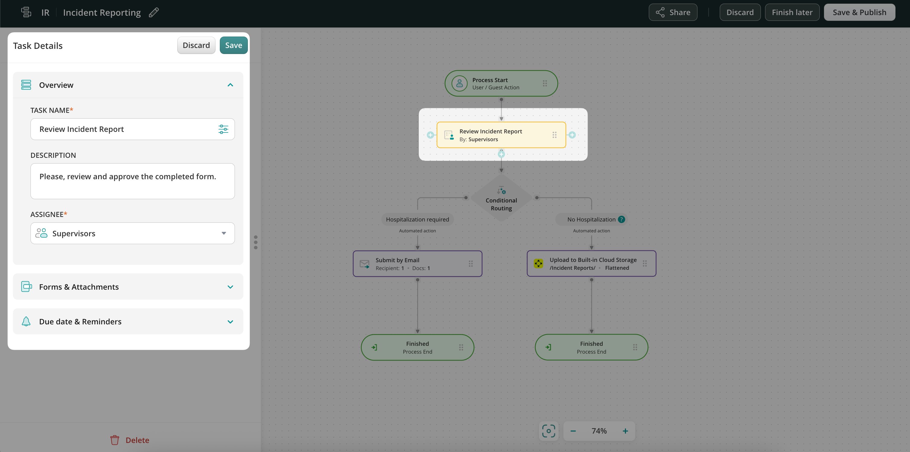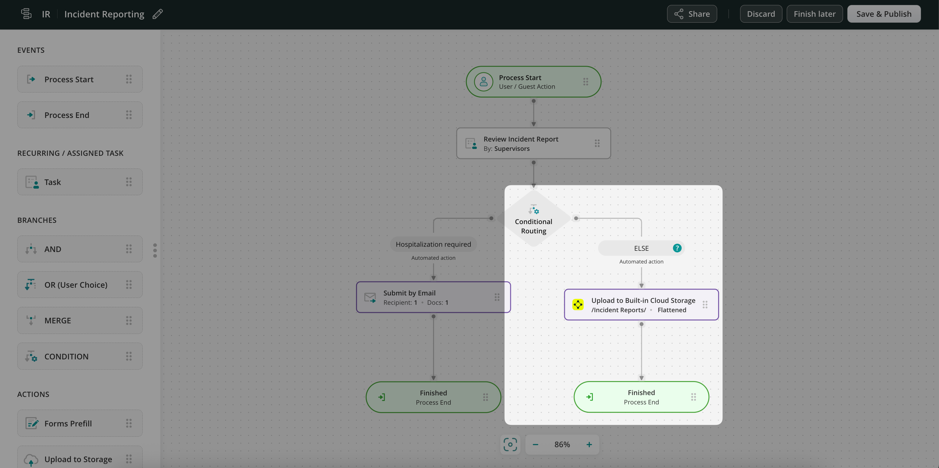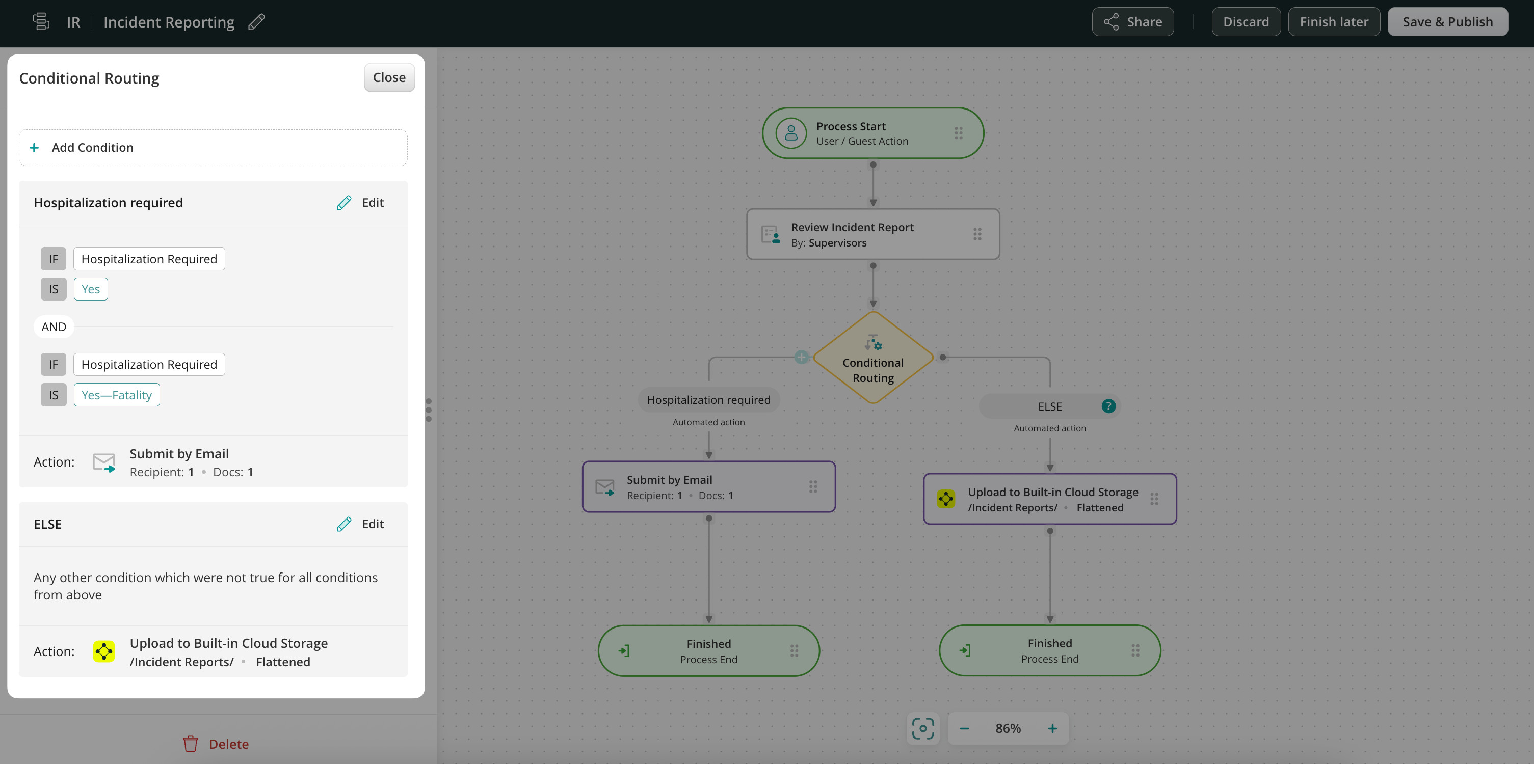 Automated notifications: Conditional routing helps your users receive only relevant notifications based on the data they enter.