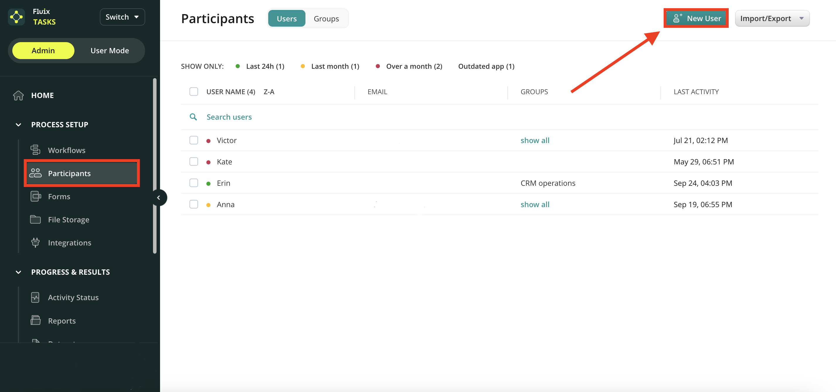 The first thing to do in Fluix setup is add users and organize them into groups for further participation in Taskstream.