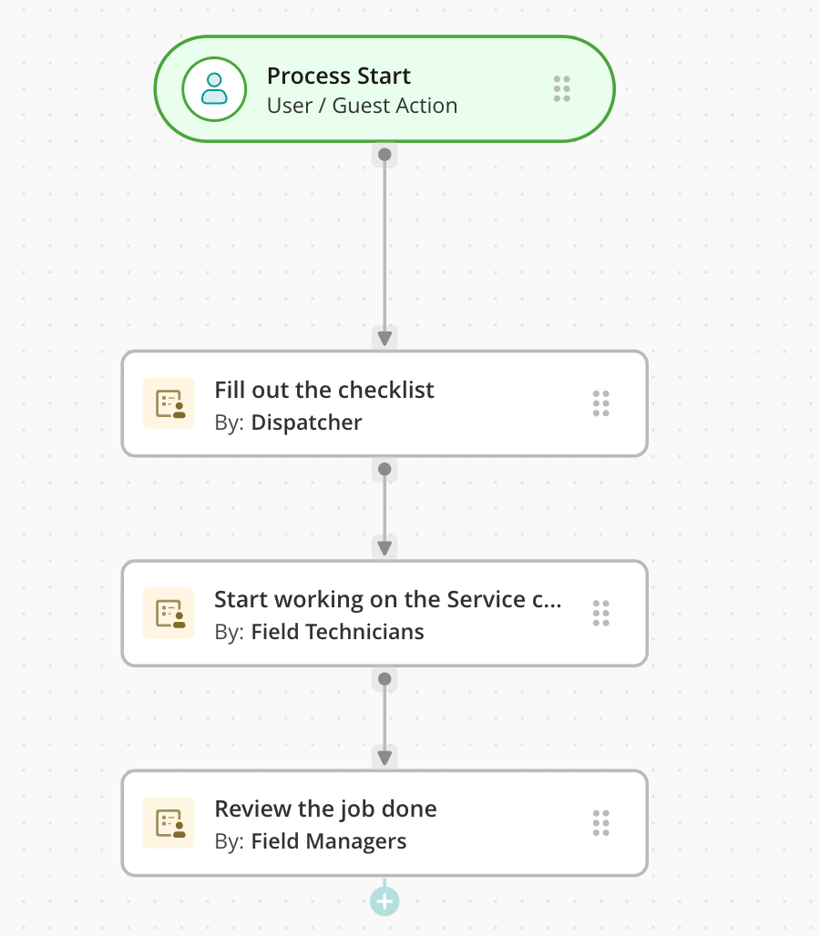 Using the same technique, add the user task for the Field Technicians and Field Managers to make them a part of this flow.