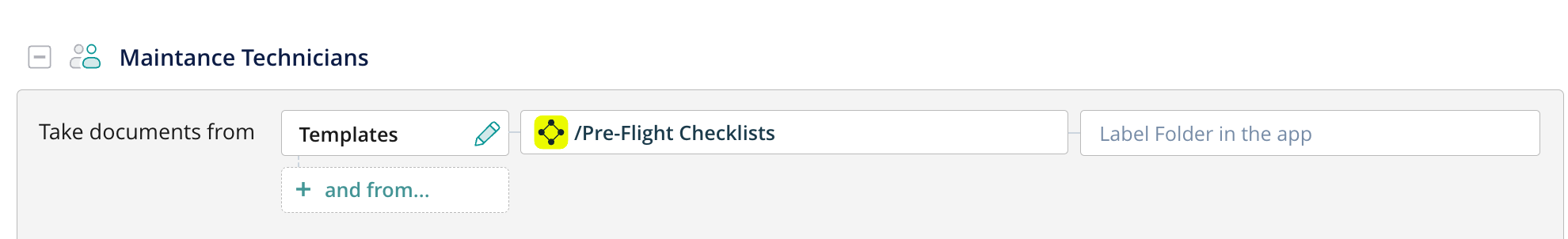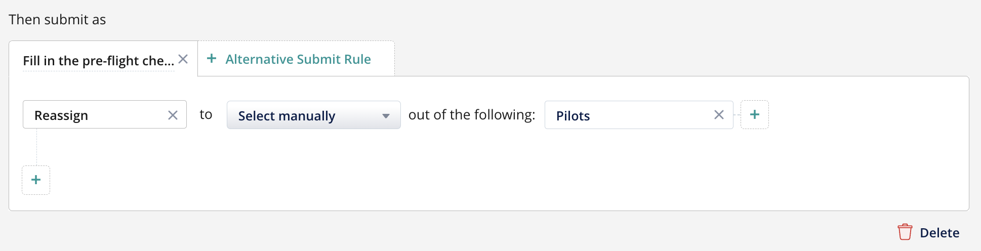 Establish how documents will flow between Maintenance Technicians and Pilots. You may usethe Reassign submit action to let the Maintenance Technician submit documents to a specific Pilot within the workflow.