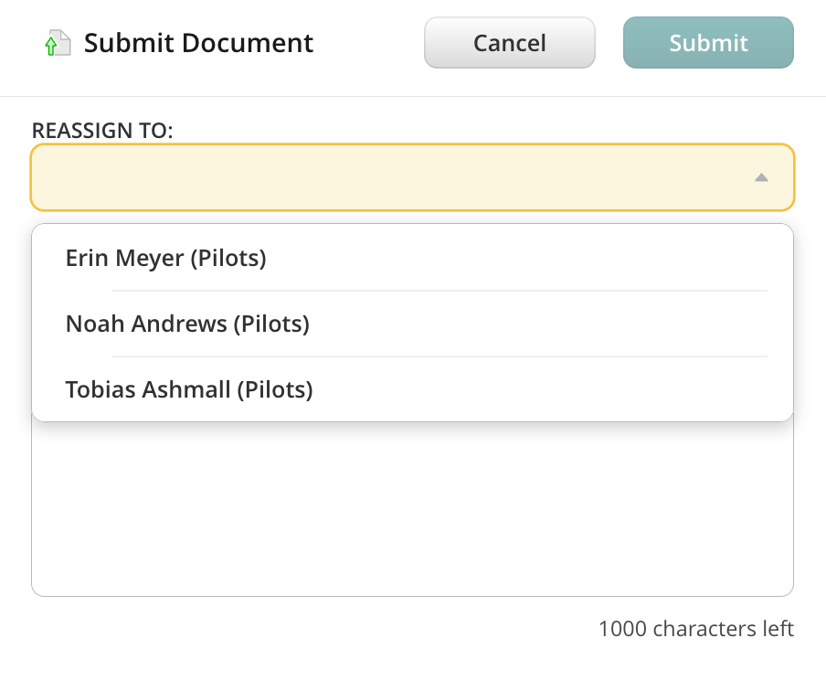 The reassigned document will arrive in the My Inbox section of the Pilot’s Fluix account.
