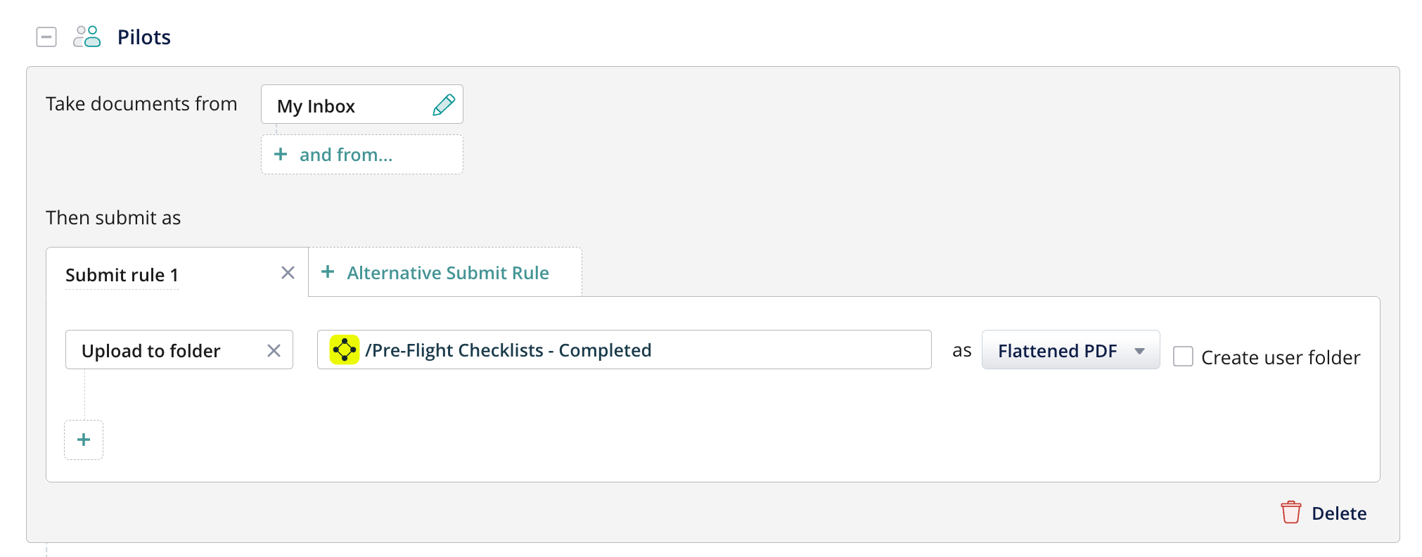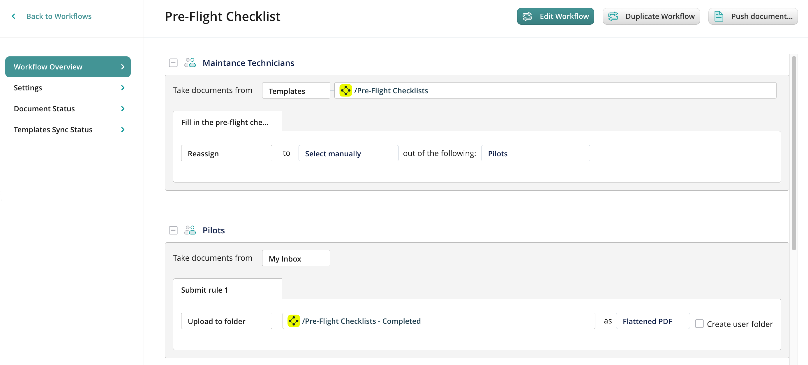 Once the Pilot fills in the checklist, it can be stored for further action. Add a final submission step where Pilots archive completed documents:
