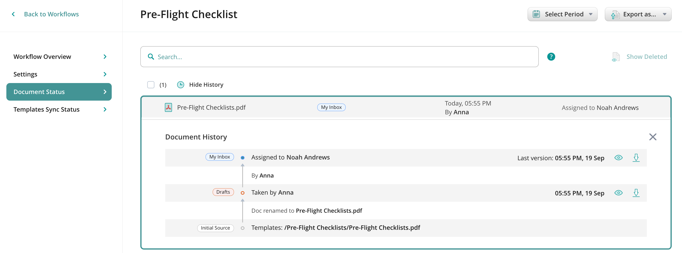 In the Document Status section of the workflow, you can track each step of the document distribution.