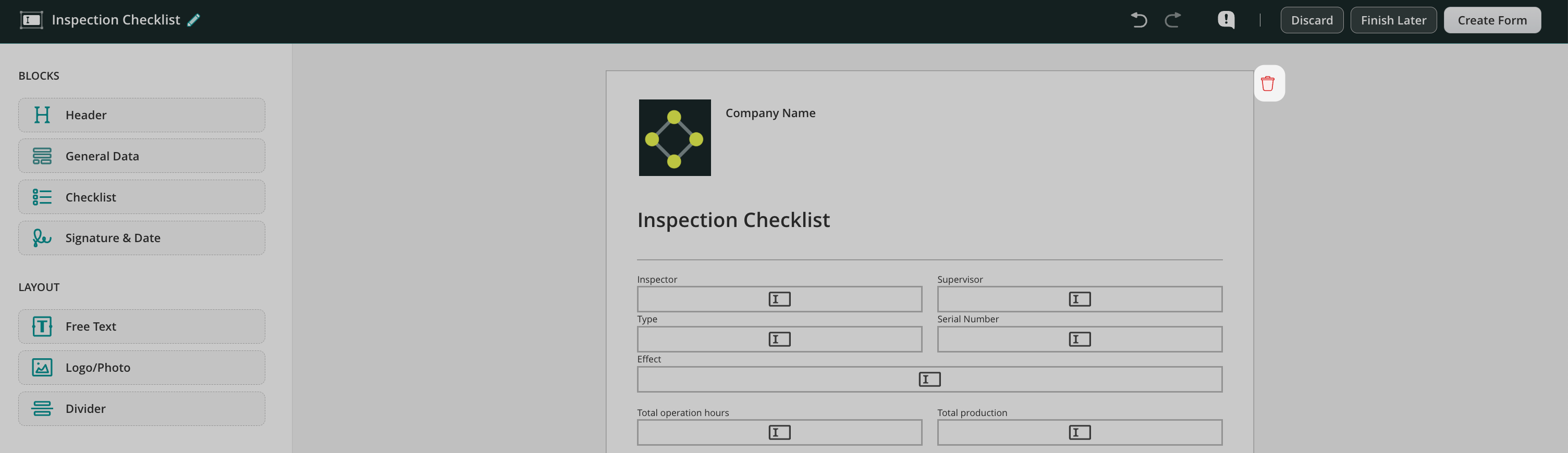 - Layout – customize your forms by adding the text, your company’s logo, and divider.