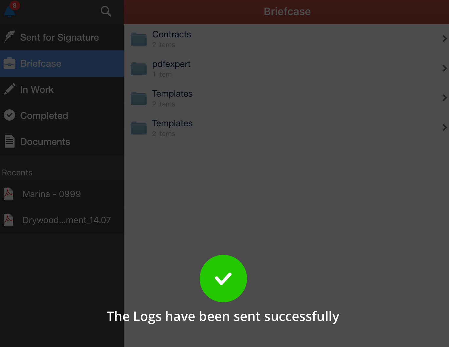 Note: Please do not close or minimize the app until you see the check mark on the screen; otherwise, the logs will not be sent.