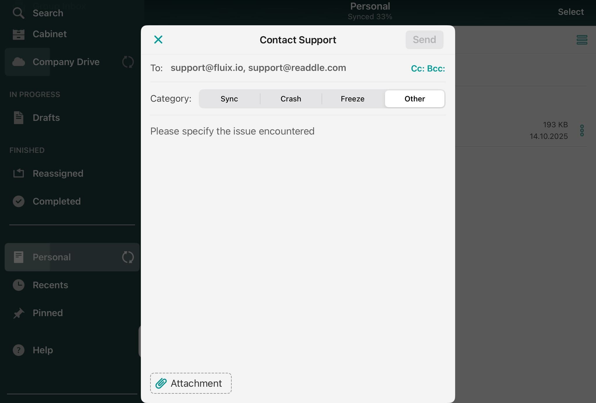 - Select the appropriate category, briefly describe the issue, and attach a screenshot to illustrate it.