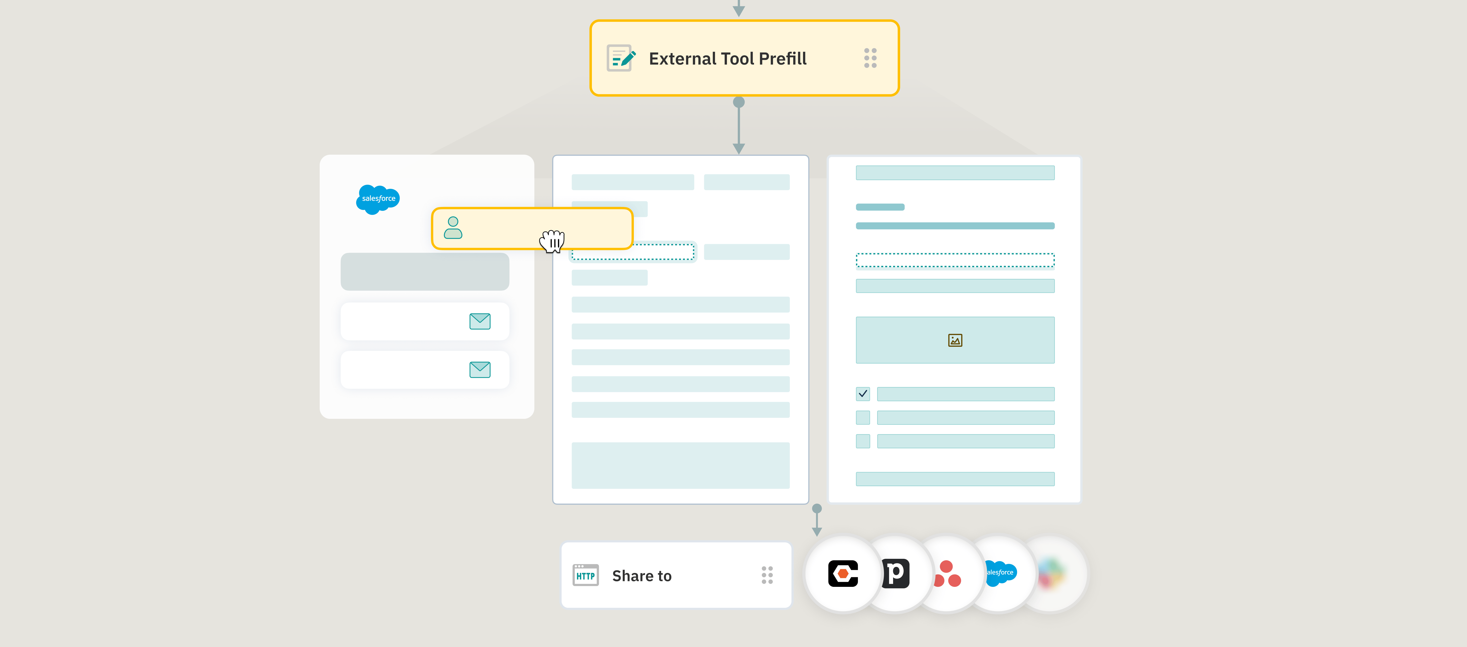- But also to the final action step (e.g., Submit by Email, Upload to Storage)