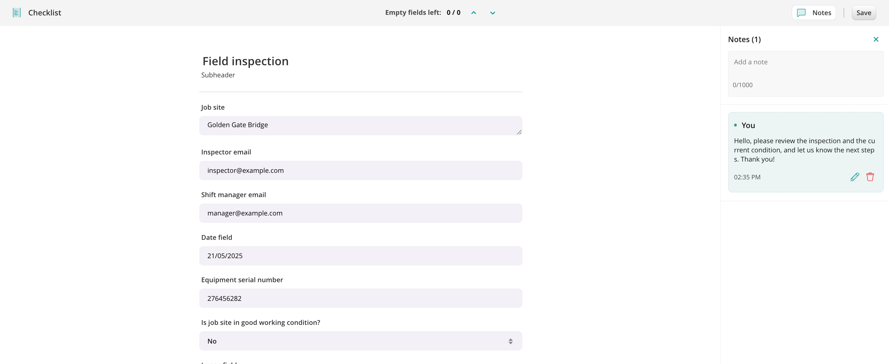 When you add a note and finish your task, the next person assigned to the task will be able to see all previously created notes and add their own for future participants.