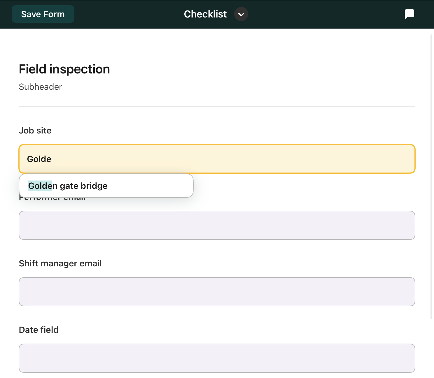 This functionality is available starting from the Fluix 3.15 app version on iOS devices and the Fluix 1.4 app version on Android devices and is enabled by default. For the Fluix app to remember the data that the users enter and start suggesting it to them, the users need to fully fill out the same words/phrases to the respective fields in the form two times (on one form level or within different forms which are configured for the users).