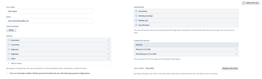 In case the added user didn’t receive the invitation email, you will receive an automatic email notification saying that the system didn’t accept the email address. Please double-check the address, and if that doesn’t help, email us at support@fluix.io for assistance.