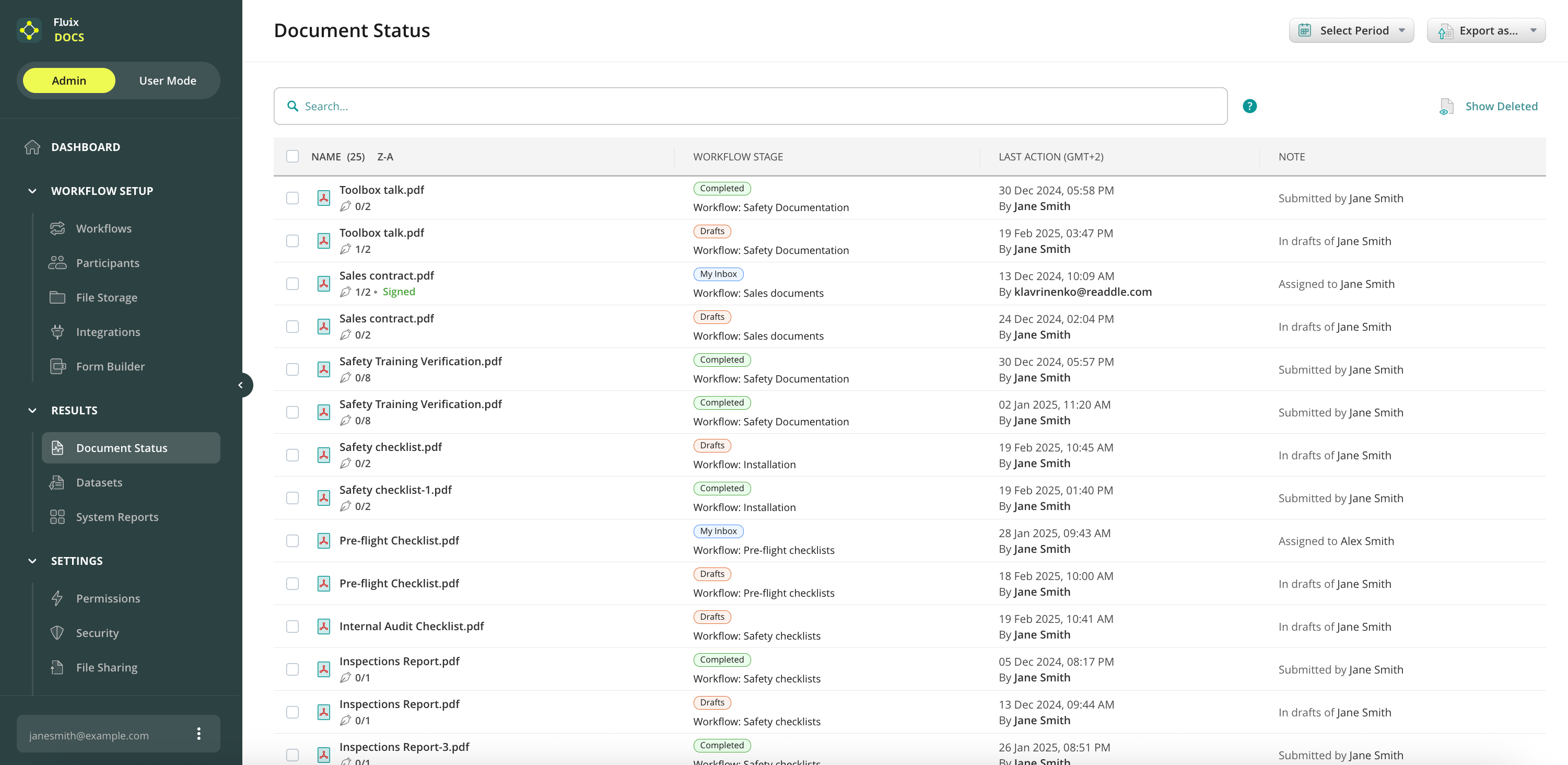 - System Reports — manage the devices, check user activity, and track the document flow within each workflow.