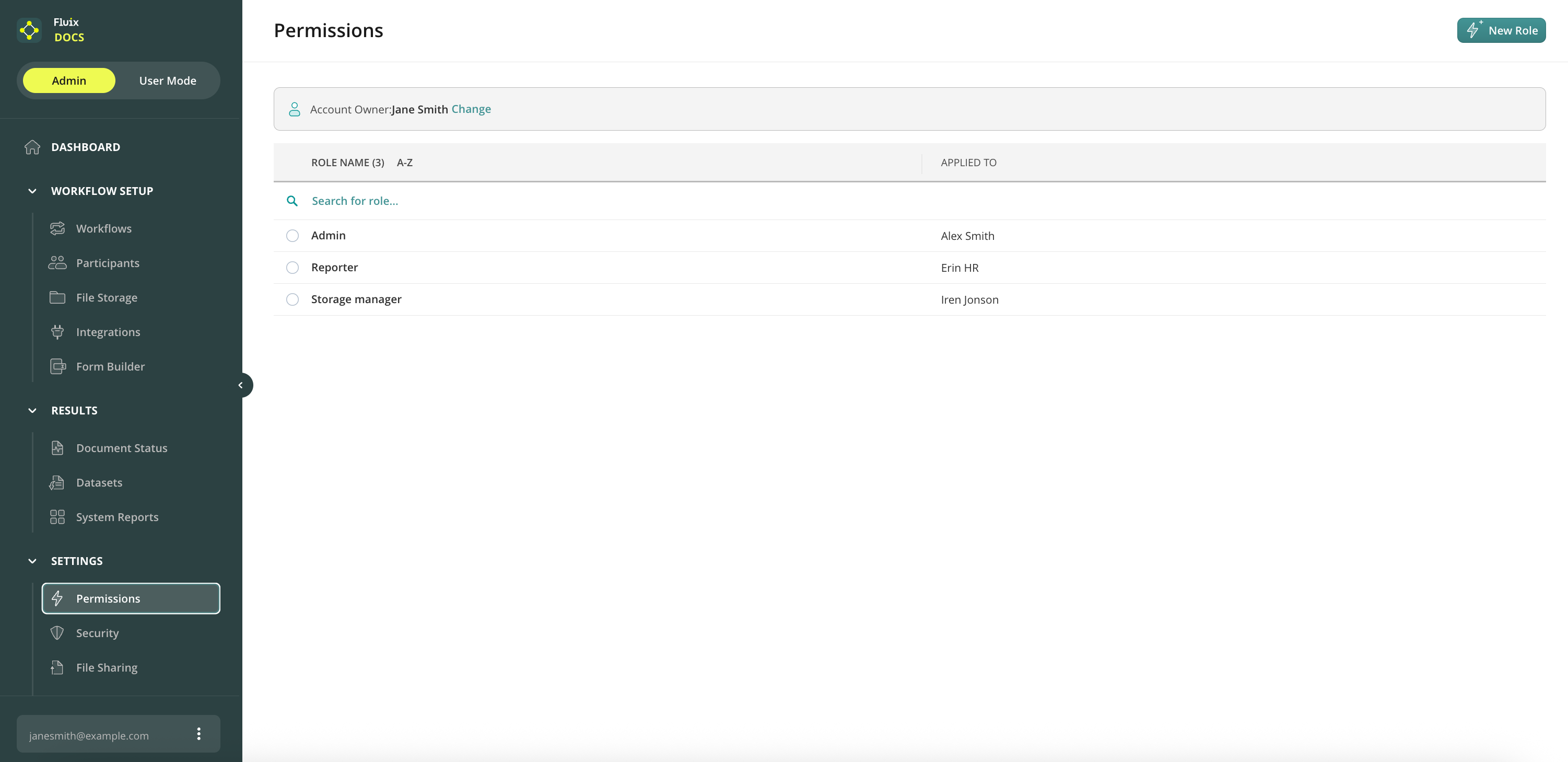 - Permissions — this allows you to give your team members specific rights to access and manage the Fluix Admin Portal.